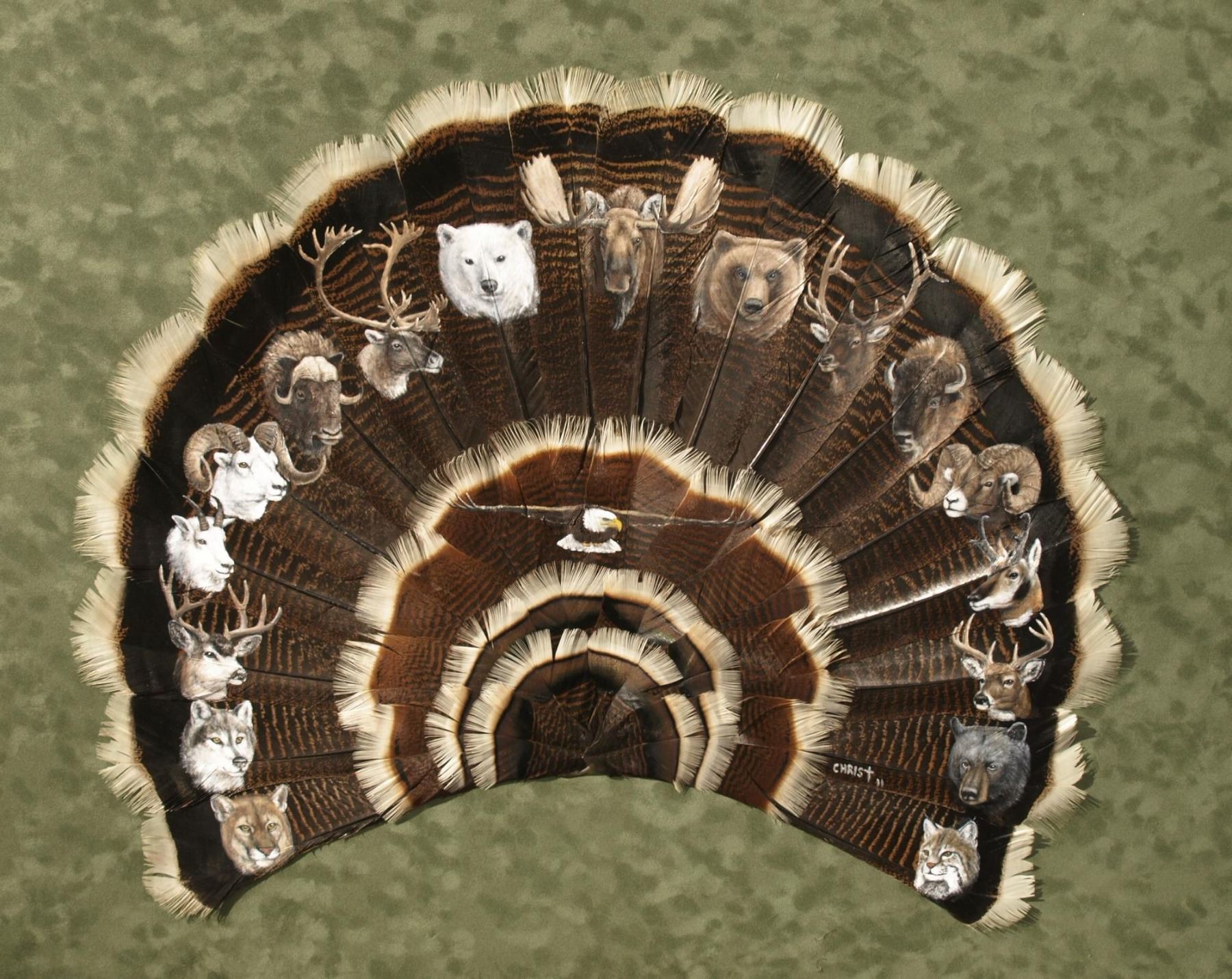 Wildlife artist Dan Christ puts his patriotism on display by painting Old Glory with a beautiful American Bald Eagle in the foreground. His medium was oil on these two Eastern wild turkey tail feathers. Anyone who loves our country would be thrilled to hang this piece of art in their home. Dan lumbers his own wood and builds his own frames as well to accentuate the beauty of his art. Please stop by Dan’s booth to appreciate his artwork and thank him for this generous 100% donation to our chapter.