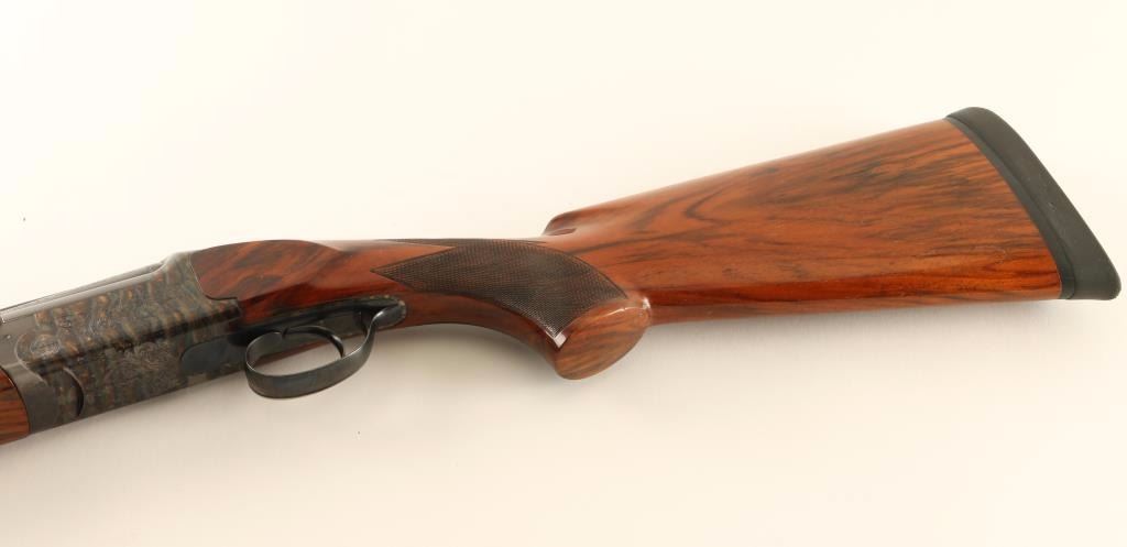'Comp 1-Trap' Engraved high quality Italian made over/under double barrel shotgun chambered for 2 3/4" 12 Gauge shells, circa 1970. Imported by Ithaca Gun Company of Ithaca, New York with import marks on the top barrel. Features blued 26 3/4" barrels with a wide ventilated sighting rib, white bead front sight, silver bead mid-sight, automatic ejectors, finely floral scroll engraved receiver with case hardened finish, removable single trigger, checkered top lever, sliding tang safety, fancy checkered figured wood forearm and pistol grip shoulder stock with Kick Eez rubber recoil pad & 14 1/4" LOP. Shotgun exhibits approximately 93% of it's original finish showing some carrying wear on the underside of the receiver, edge/handling wear on the trigger guard and slide wear under the safety. Action is crisp, bores are pristine and wood stocks are very good with semi-worn checkering & small blemishes. Condition is near excellent. ***Modern Firearm***
