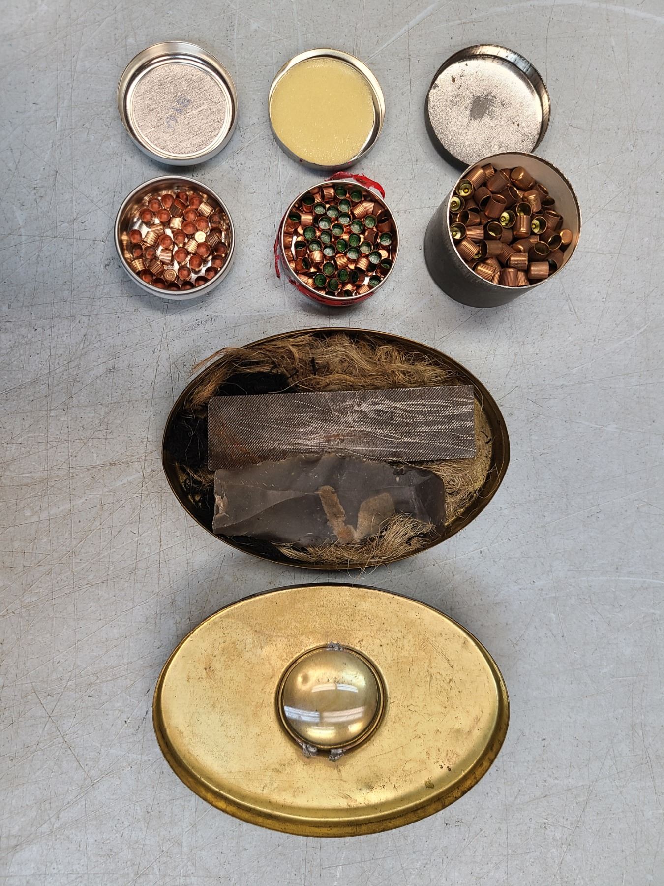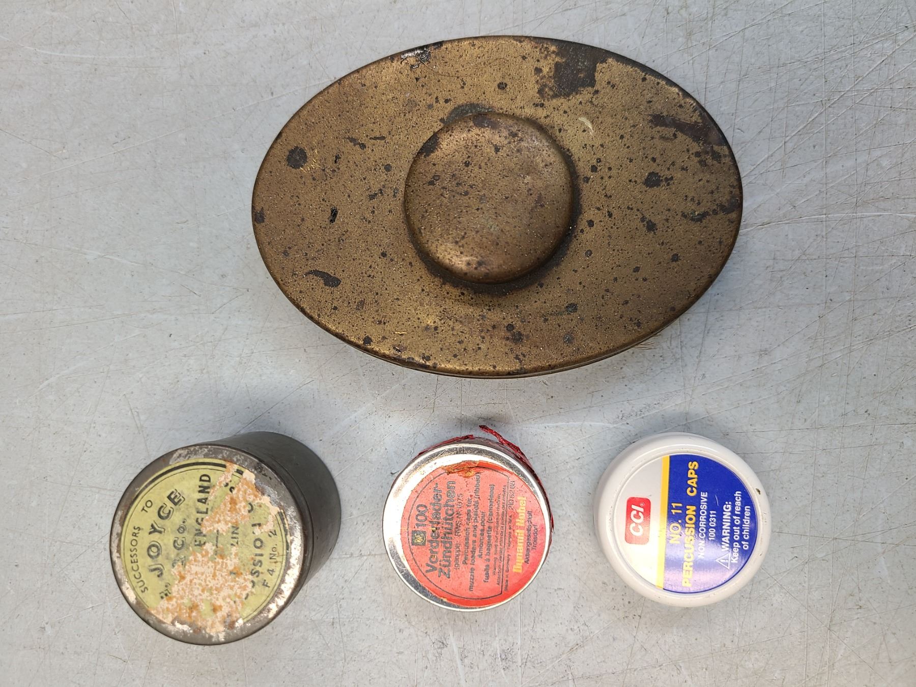 Percussion Caps x 3 Plus Flint Tinder Tin