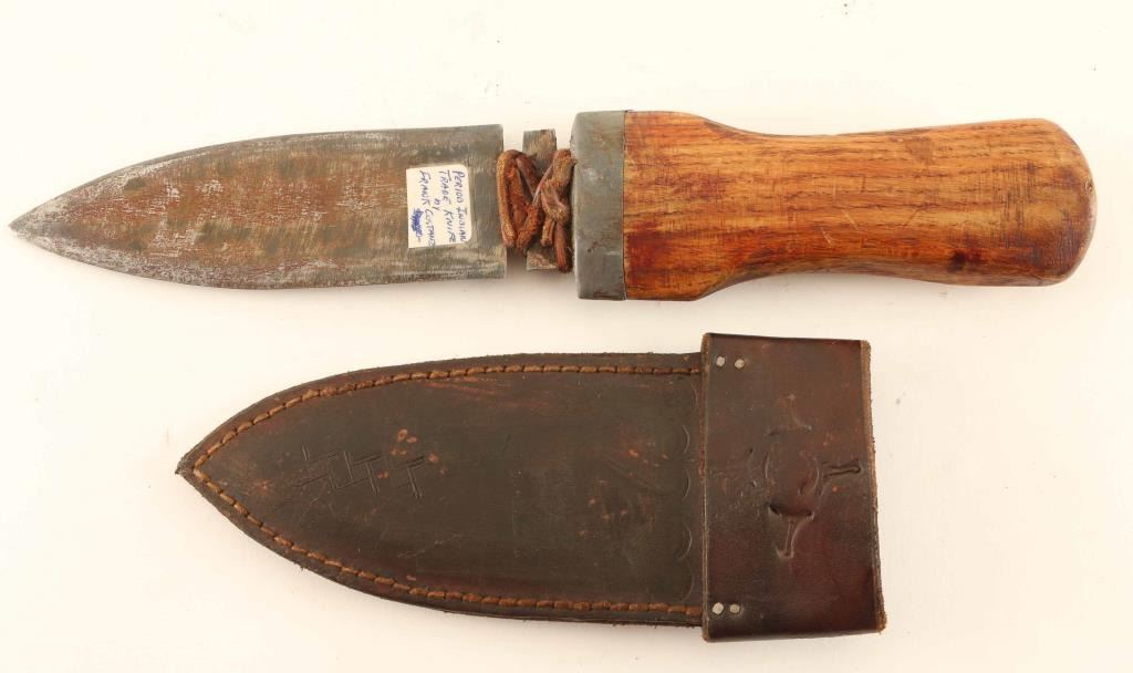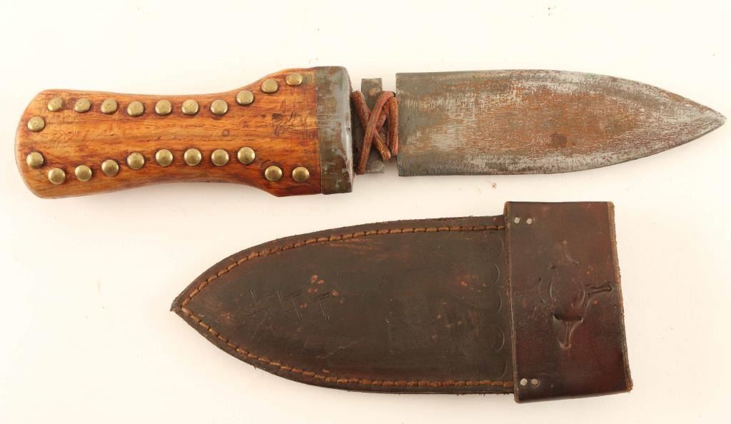 Wood Handle With Brass Tacked 13.5" Overall With Leather Sheath