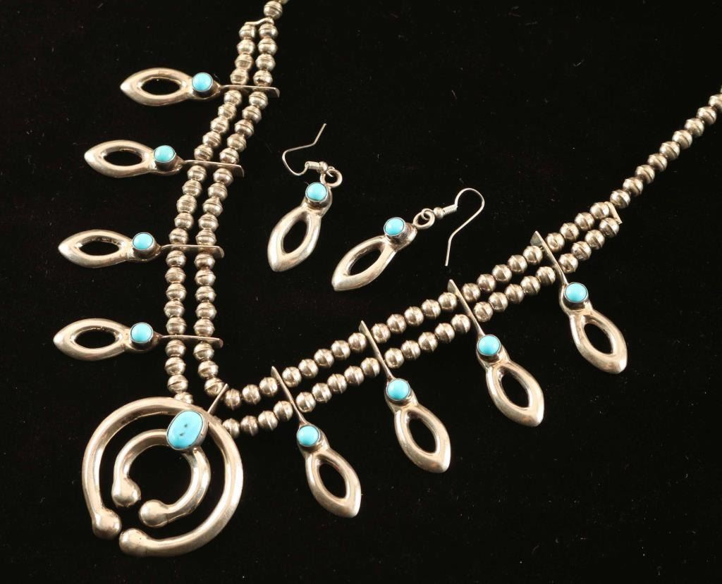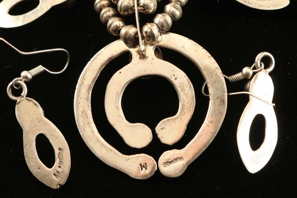 with matching earring all sterling with sleeping beauty stones, maker marked "W". 18.5L and 63.4g