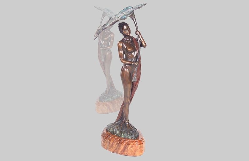 This Limited-edition bronze by artist Raj Paul titled Philodendron Fantasy and depicting an African woman holding a Giant Philodendron leaf stands 17 inches tall and would be a great edition to any hunter’s gallery.