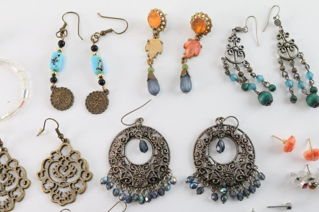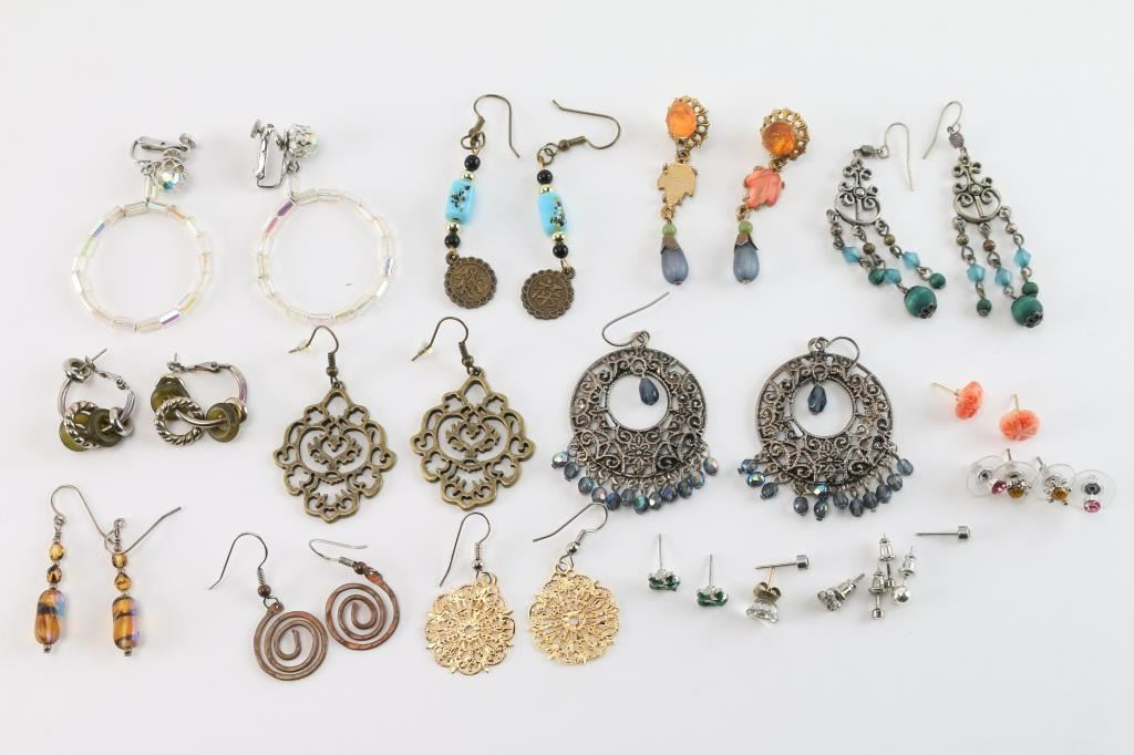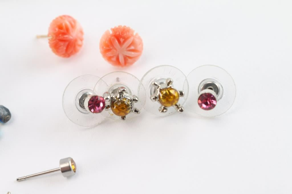 Miscellaneous dangle earrings and studs. All pierced.