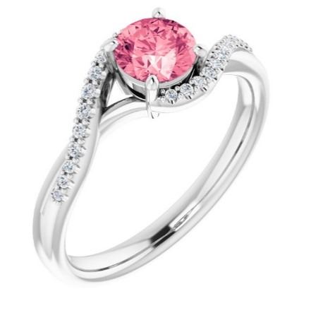 A stunning piece of fine jewelry - a gorgeous Pink Topaz set in 14kt White Gold. This highly sought-after Pink Topaz is just over 1 carat in weight. This beautiful center stone is cut in the classic round shape. The center stone is uniquely surrounded by genuine bright white diamonds in a modern design which then trails all the way down each side of the ring. Don't miss your chance to bid on this classic yet cutting edge design. This ring is available in any size.