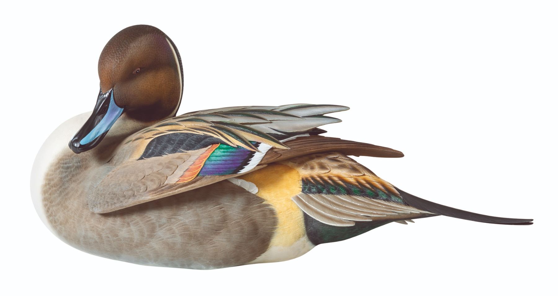 This cast resin pintail drake is from an original carving by Jett Brunet. In 2020, Jett was recognized as a Ward Foundation Living Legends award recipient. Jett has won more than 35 Best of Show awards and continues to be an inspiration to fellow carvers. The decoy includes a Ducks Unlimited cloisonné style medallion inlaid in the felt covered bottom.