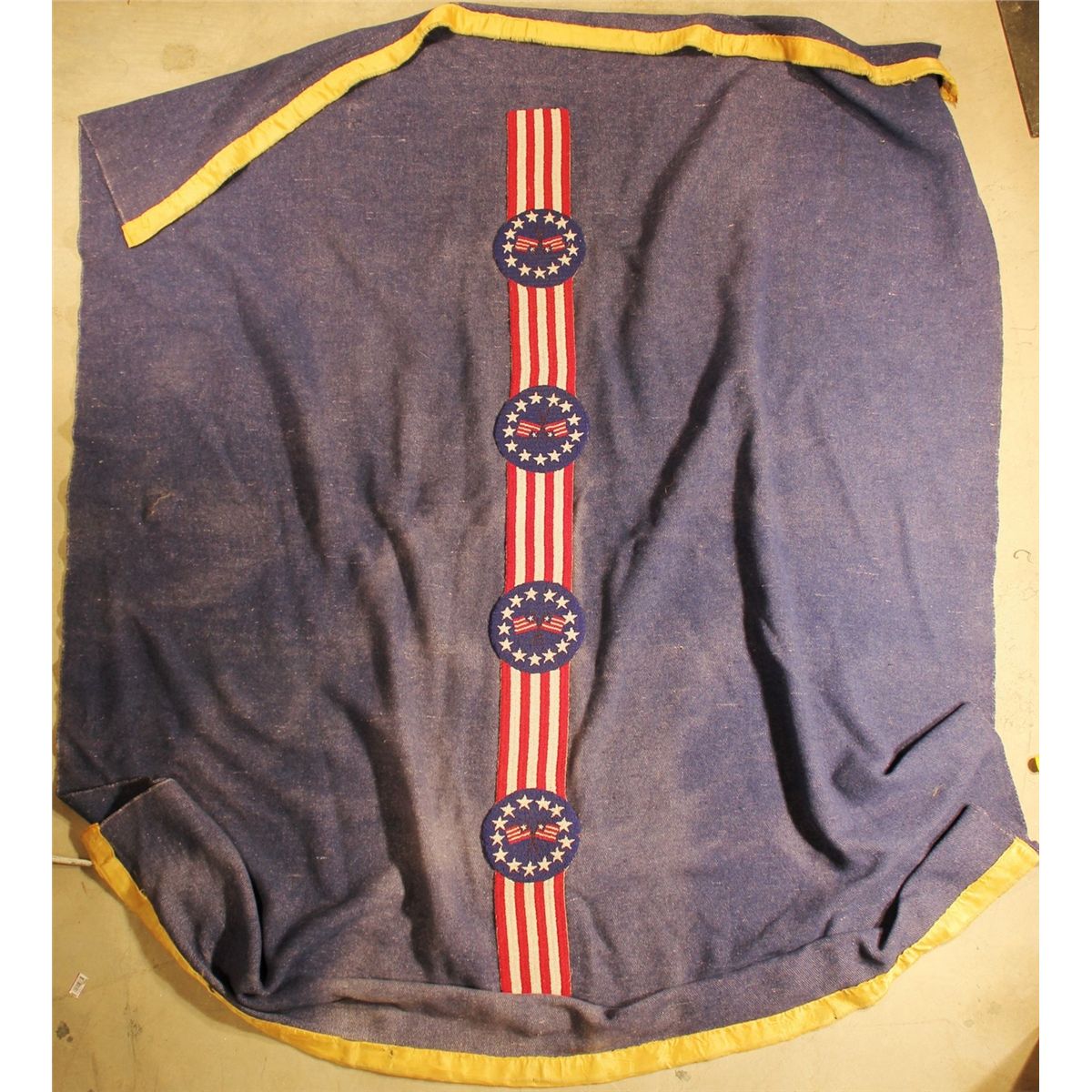 Plains-style Blanket Strip; with a patriotic stars and stripes pattern on a woven trade blanket. 63" x 75".