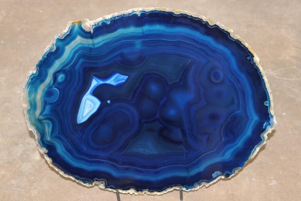 Stunning Polished Blue BRAZILIAN AGATE Slice. It measures 12.75" Long x 9.75" Tall and is just over 5/16" Thick. It weighs 1 lb 12 oz and comes with a Display Stand. ROCKS FOSSILS MINERALS
