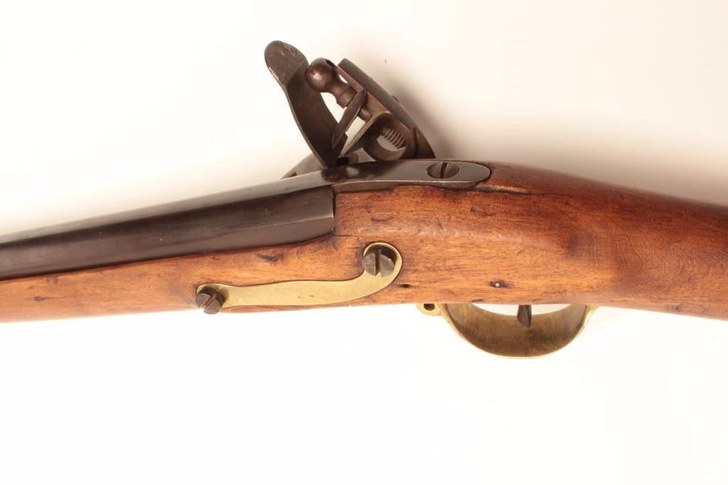 Potsdam Napoleonic era flintlock musket from Prussia area of German States; brass mounted, .75 caliber, shows cleaning and restorations; very good overall with well-marked lock. (Antique). Est.: $600-$1,200.