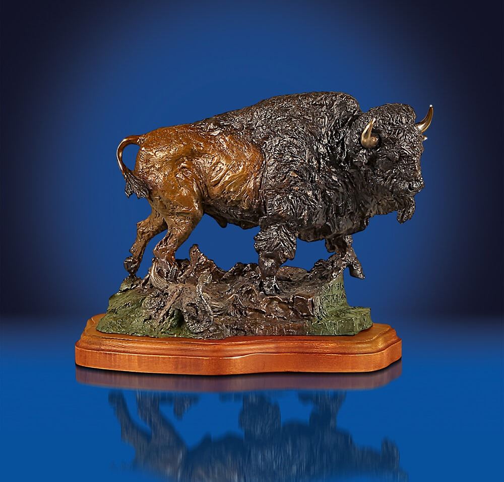 Full Description: Once again Montana Safari Club is proud to feature the work pof renonowedsculptur Lorenzo Ghgilieri. The Piece titled “Power of the Plains” features an American Bison Bull in all his glory. This piece is mounted on a beatiful wood base and measures 13”Hx18”Wx10”D, We would like to thank Lorenzo and Angie Zook for helping us obtain the fine piece of art.