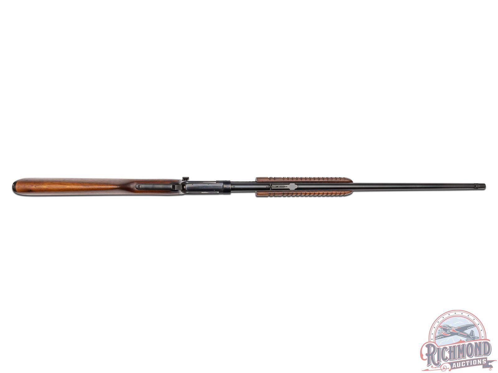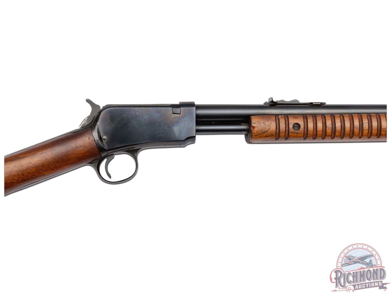 Made by Winchester Repeating Arms in 1954. Fitted with 23" blued Winchester Proof Steel round barrel with standard sights, Winchester model/address/caliber marking with blued tubular magazine in 22 Short, Long, Long Rifle caliber. Blued visible hammer takedown frame with plain trigger. Standard walnut plain stocks with flat bottom corrugated slide handle. Butt stock fitted with Winchester hard rubber butt plate. CALIBER: 22 S/L/LR. S/N: 326767. FFL STATUS: Curio & Relic.