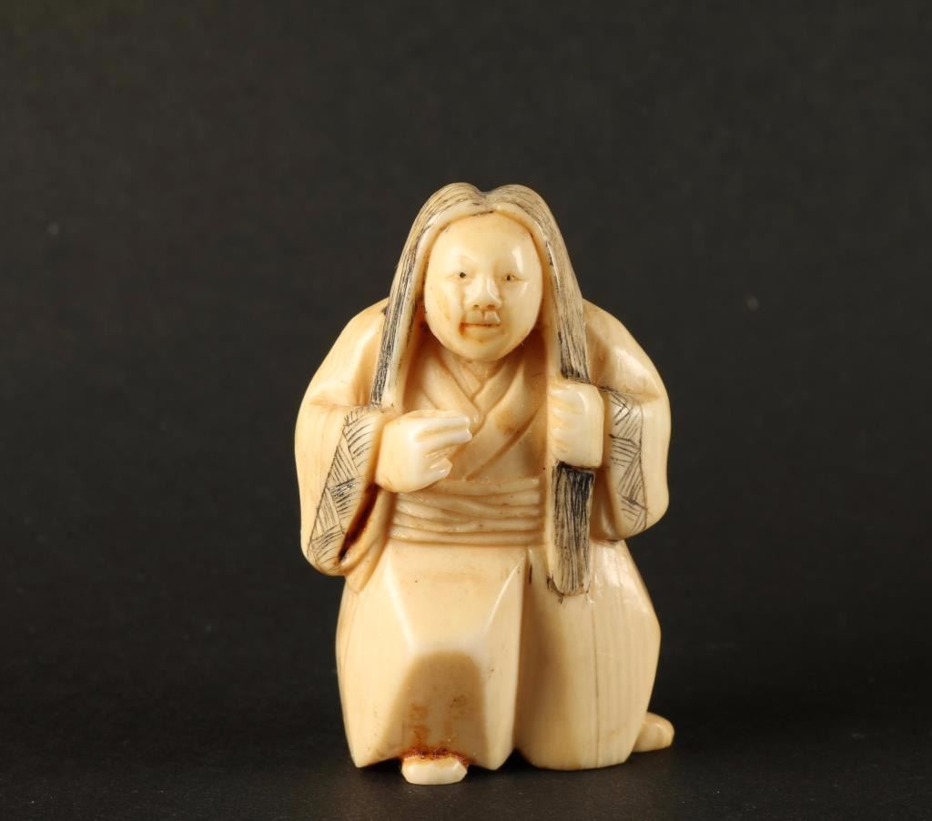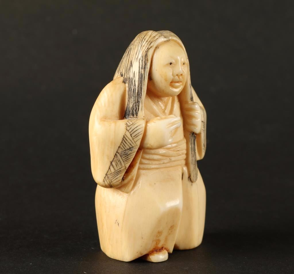 Small figure of old woman with long hair. Maker signed on bottom. Measures 2"x1". Can only be sold in Arizona by law and commerce.