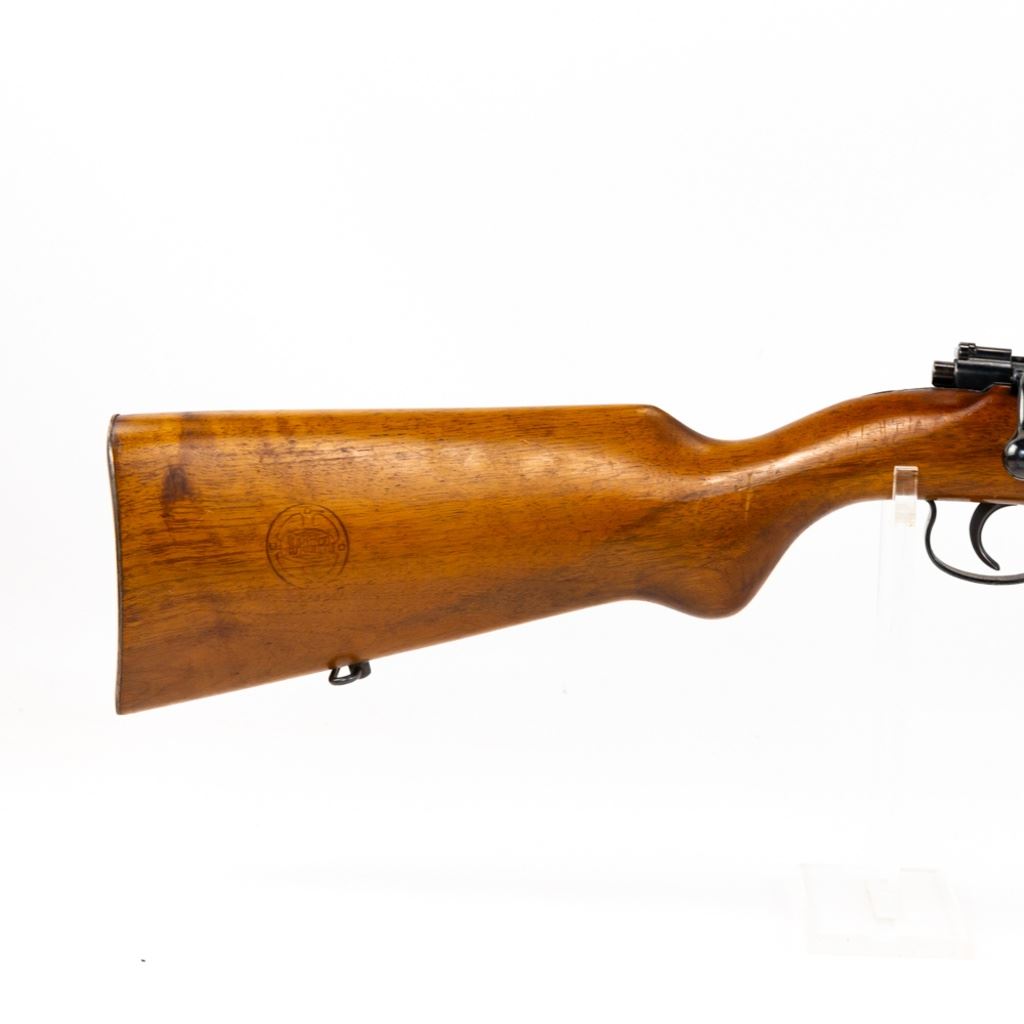 Pre-War Mauser ES 340B 22lr Single Shot Rifle in very good condition with some wear and remnants of some oxidation. The bore is very good! Excellent pre-WWII Mauser model ES340B Meisterschaft (Championship) target rifle, manufactured circa 1930's. This was a premier Mauser small bore target rifle, used by top German military and civilian shooters. The receiver marked with a small "Mauser Banner" logo, with "MAUSER-WERKE A.G.-OBERNDORF A.N." and "PATRONE-22 LONG RIFLE" stamped on the left side. The barrel has the prewar Crown/B, U and G" factory proofs. It has a fully adjustable military style, target rear sight calibrated, "30-200" feet, adjustable for windage and elevation with a fixed, inverted "v" style front sight. It has the Mauser factory grooved receiver designed for scope rings. Milled trigger guard with checkering on the bow to aid in off-hand shooting. Mauser factory walnut stock with a large circular Mauser banner cartouche on the right side with a black plastic Mauser Banner marked checkered buttplate. All matching serial numbers on the barrel, receiver and underside of the bolt. .C&R Eligible S/N:167437