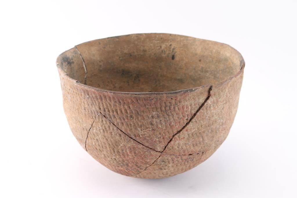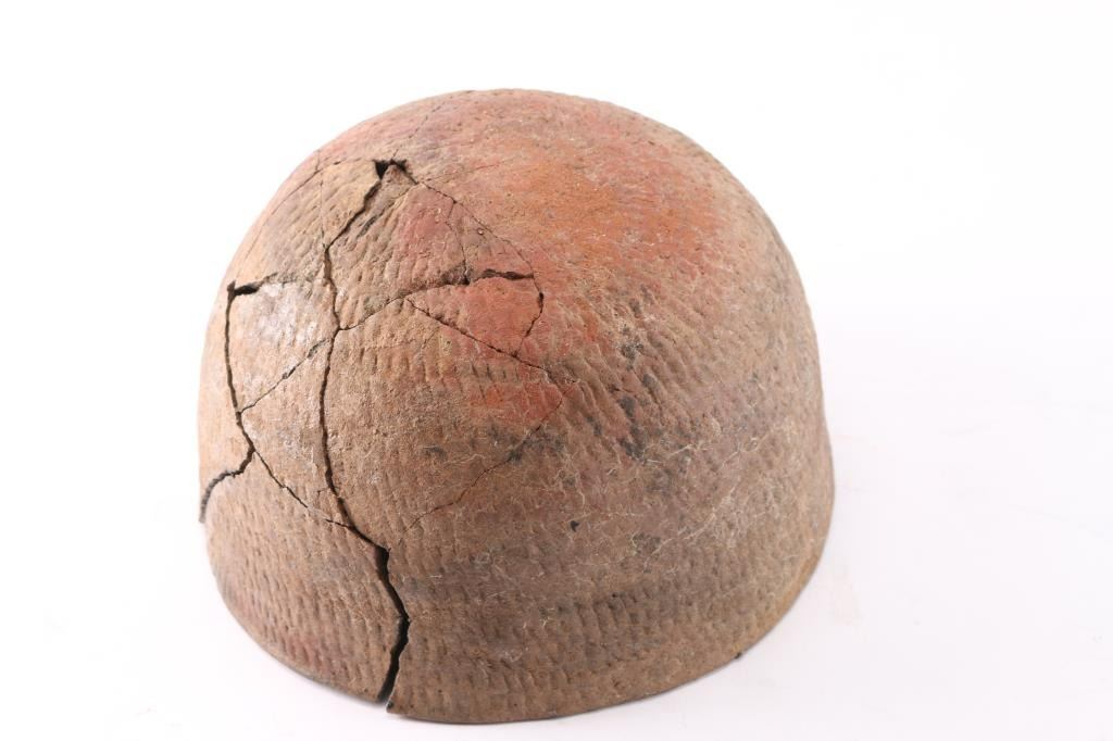 Measures: 5-1/2"H x 9"W x 9"D. Has chips, cracks and has been put back together.