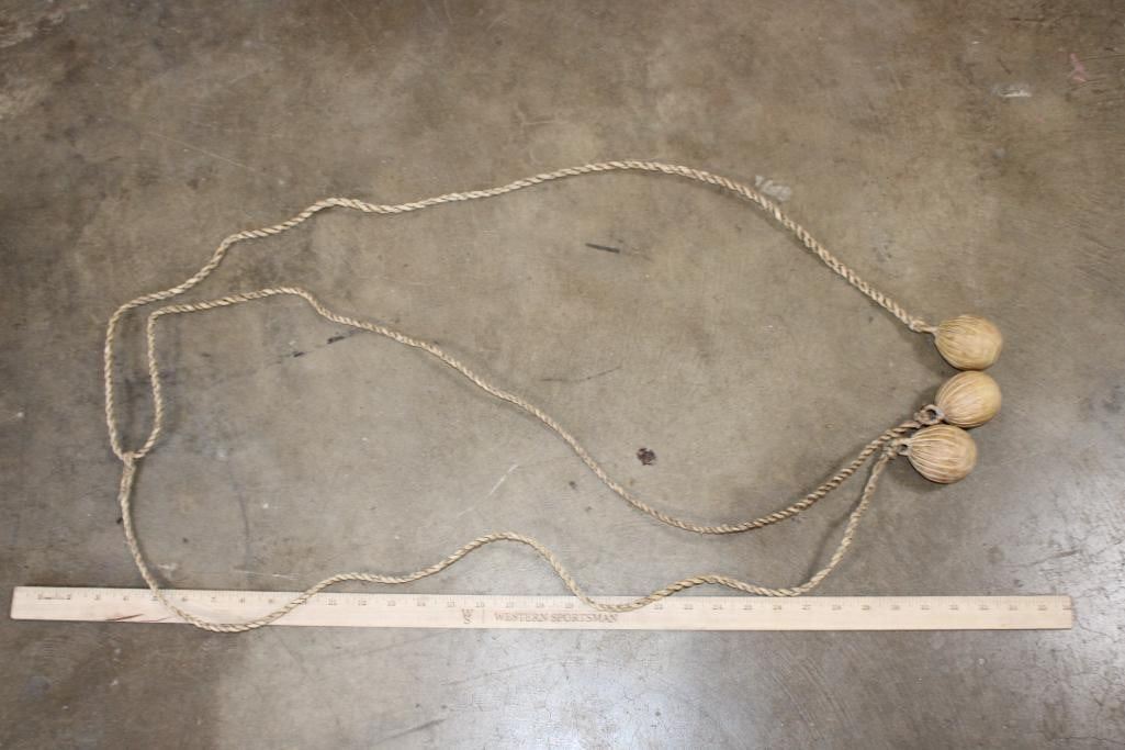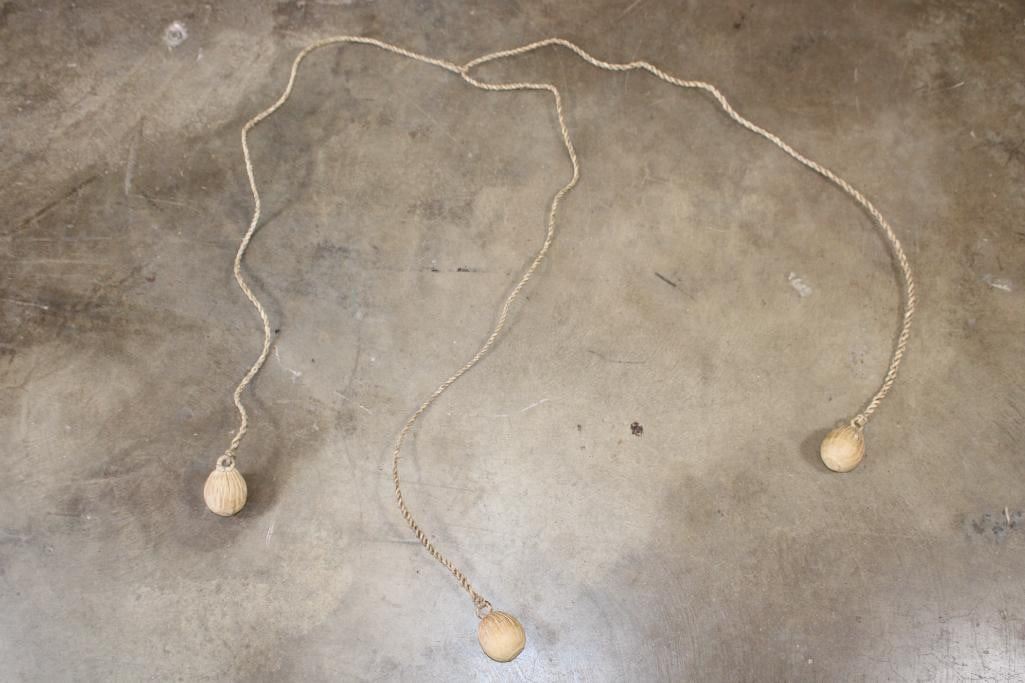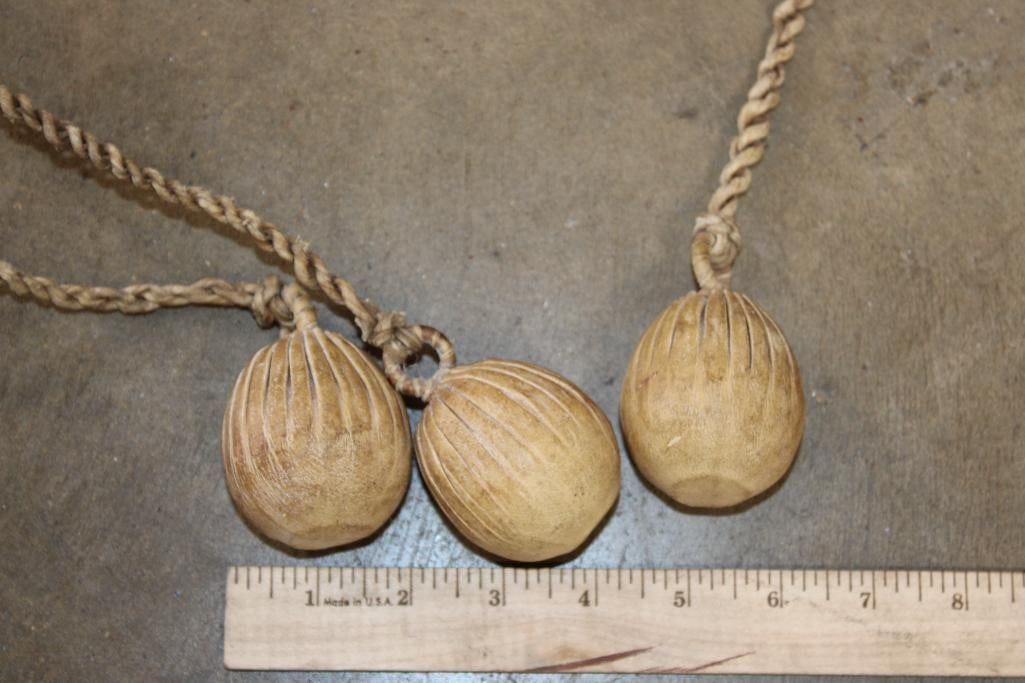 Primitive South American Set of Rawhide BOLAS. A Bola is a traditional South American hunting tool called a boladora or bola. It features three balls or weights made of stone or lead encased in rawhide. COLLECTIBLE LATIN AMERICAN ARTIFACTS