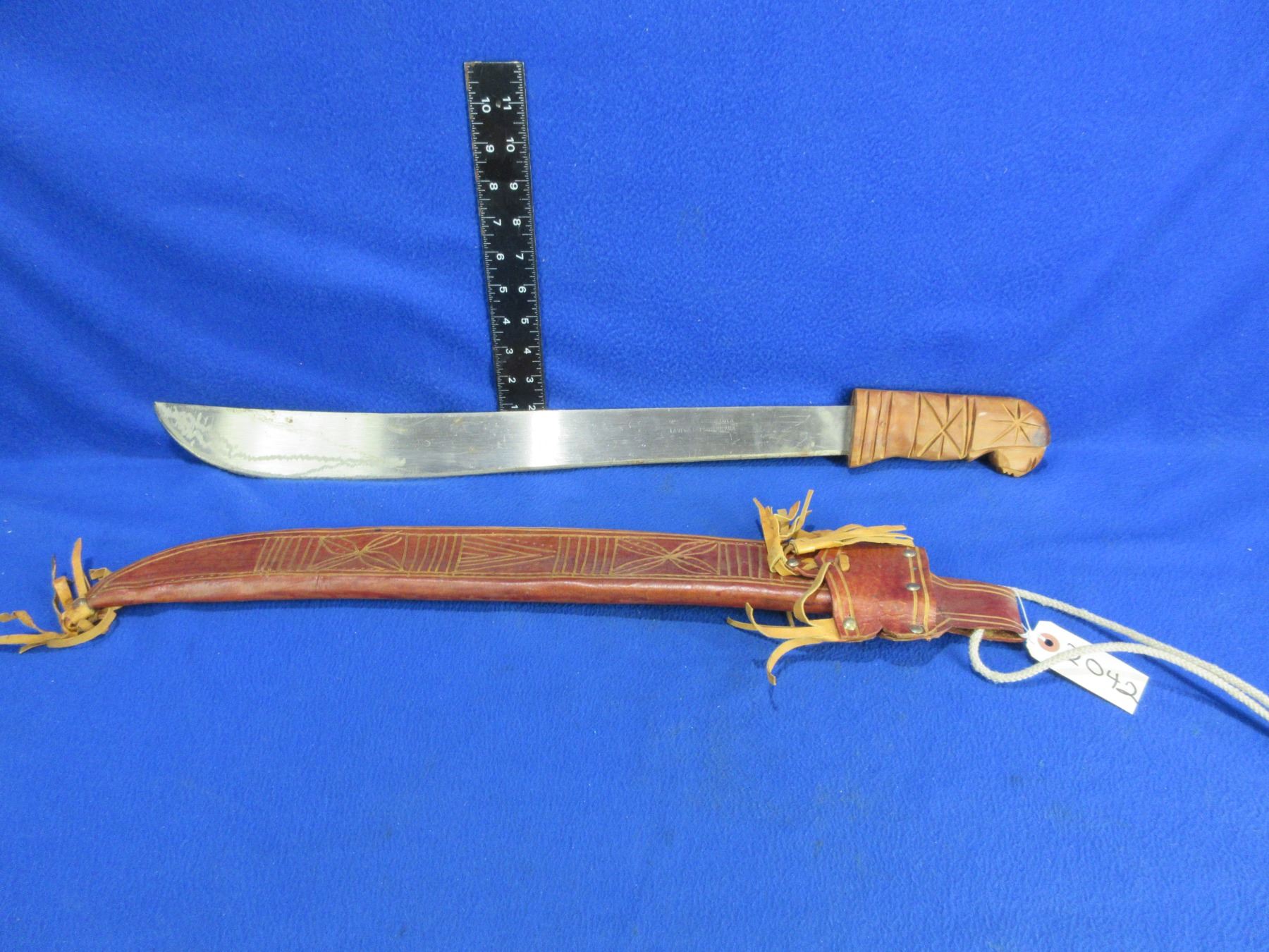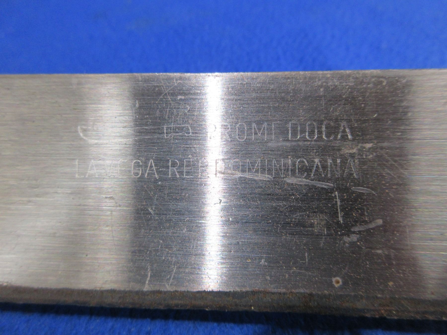 Promedoca La Vega Dominion Republic Machete with Leather Sheath - 21 3/4" Blade - Handle has a hairline crack on 1 side and blade has chips