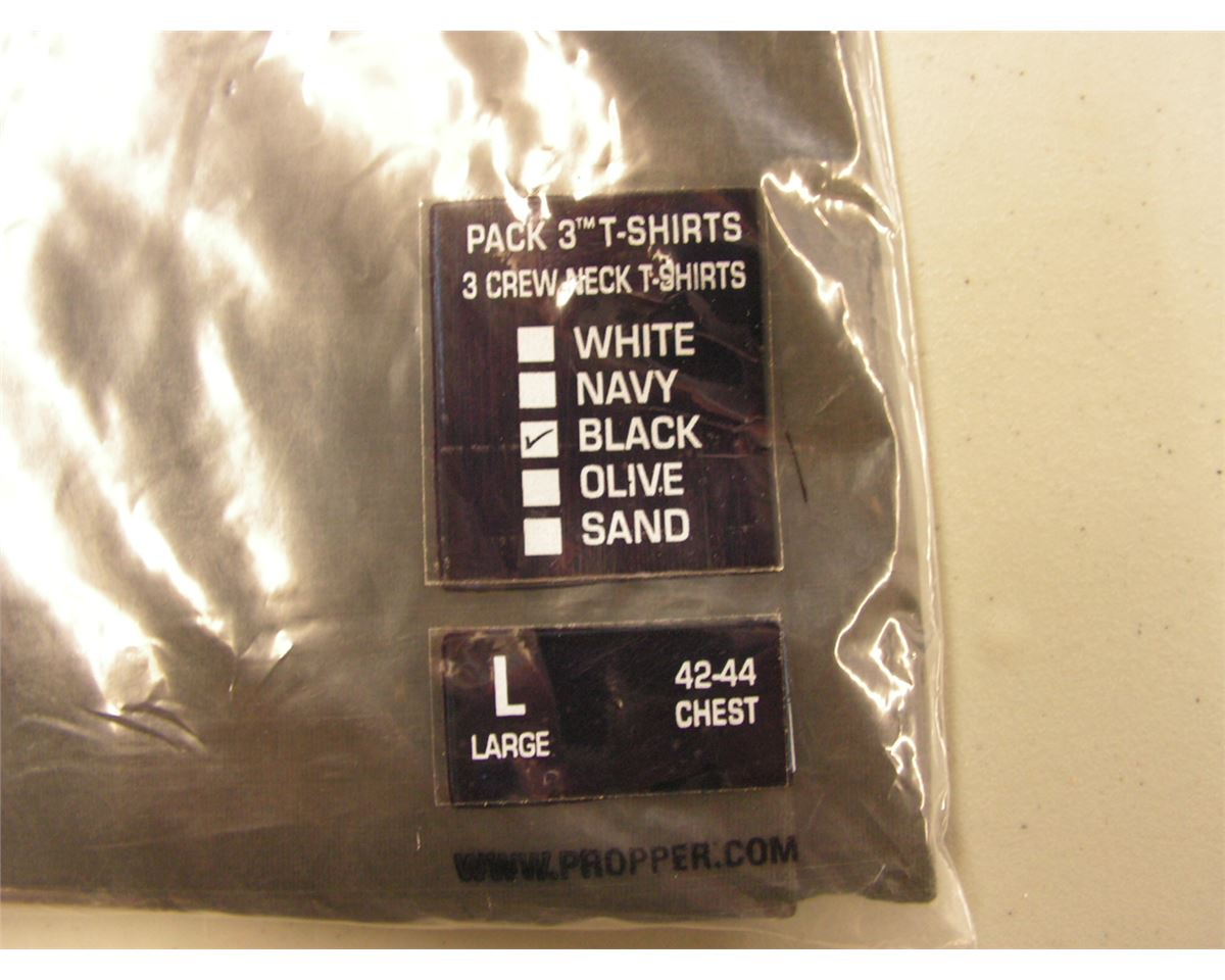 Propper T-Shirt 3 Pack (Black, Crew) LARGE - New