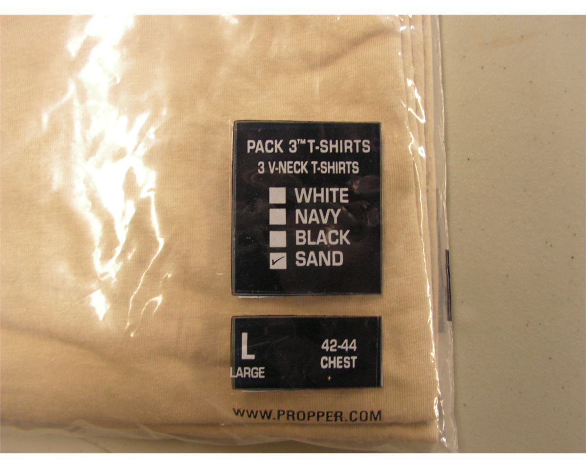 Propper T-Shirt 3 Pack (Tan, V-neck) LARGE - New
