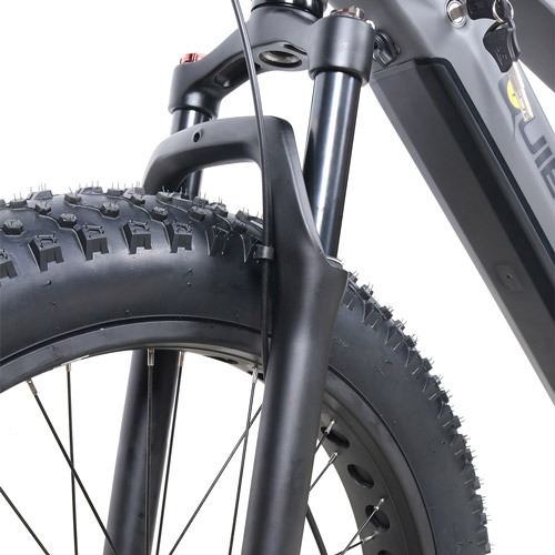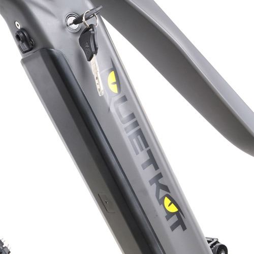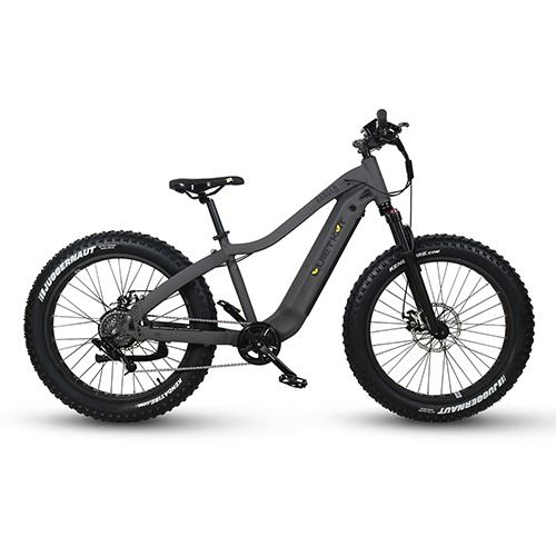 This Quietkat Ranger electric bike is in Charcoal gray. The 2020 Ranger comes with an all-new 750-Watt integrated battery and motor system, adjustable coil-suspension, mechanical disc brakes and a 7-speed drivetrain. This go-any-where electric bike has a 17” QK Charcoal Gray frame and 11.6ah/48v battery that can take you up to 40 miles on a single charge! The bike weighs 79 pounds, and can carry 325 pounds with its Kenda Juggernaut 26’ x 4.5’ tires.