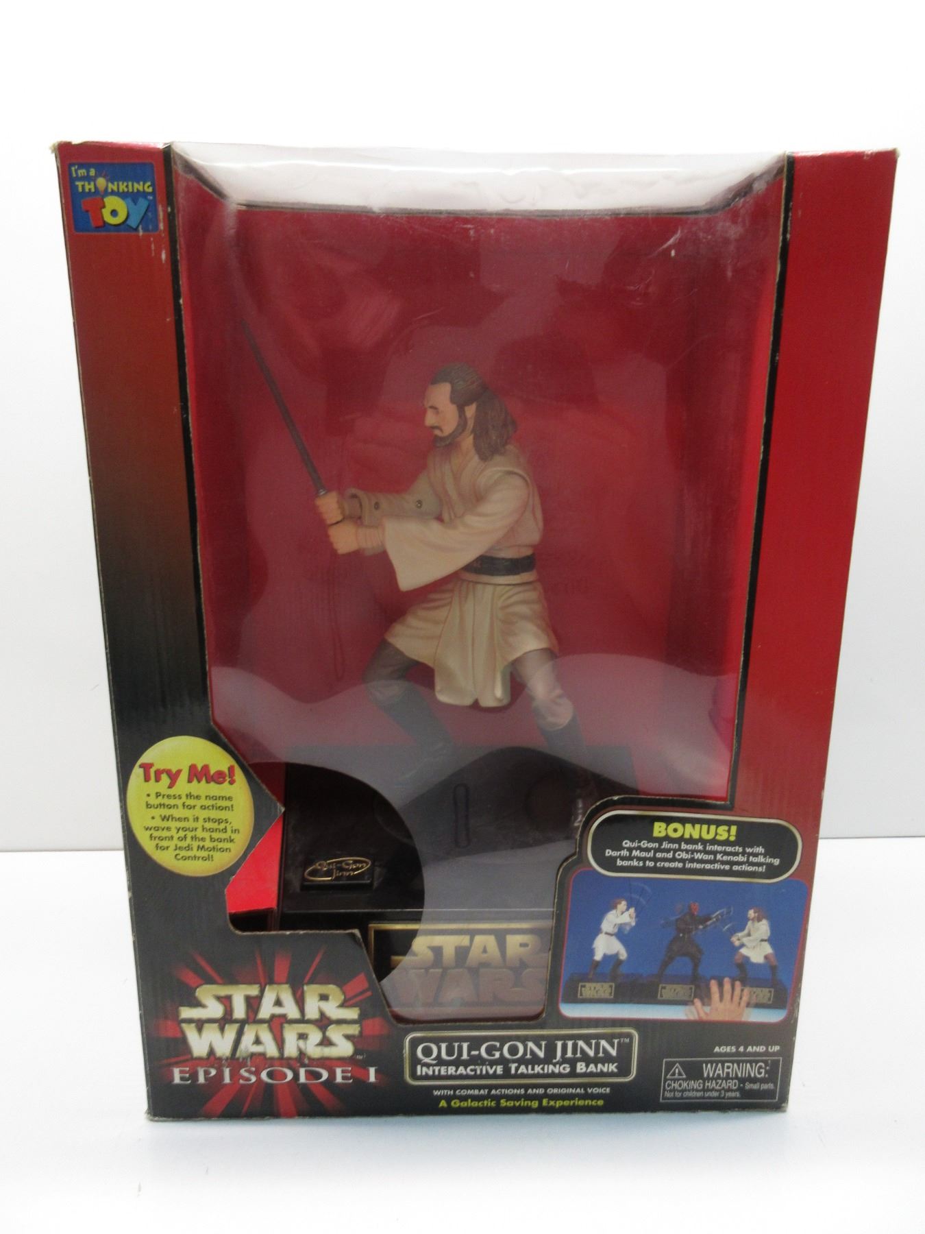 Qui-Gon Jinn Interactive Bank has been opened as tape on top of box is cut