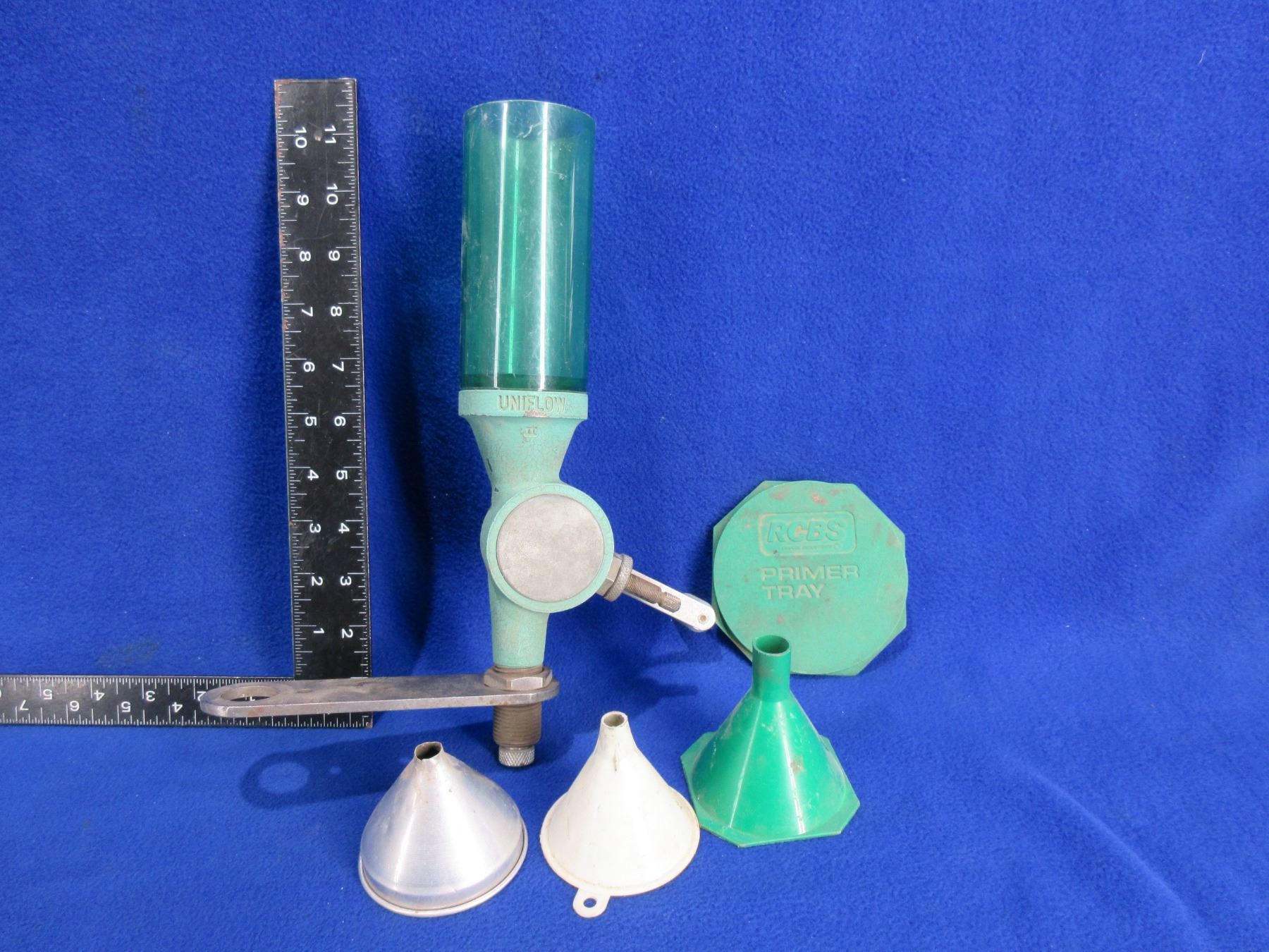 RCBS Uniflow Powder Measure with Primer Tray and 3 Funnels - Powder measure is missing the lid