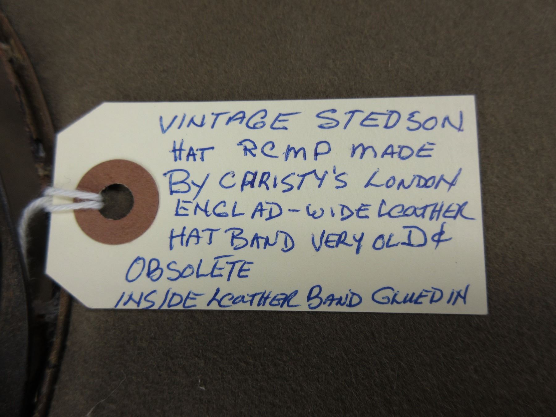 RCMP Vintage Stetson approximately 1920's to 1930's - Made by Christy's London England, inside band has been glued in so we can't find a size but inside circumference is 22 inches.
