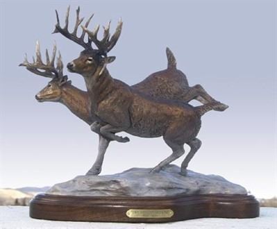 Features both a typical and a non-typical whitetail buck. The life-size monument can be found at the Edmonton International Airport.