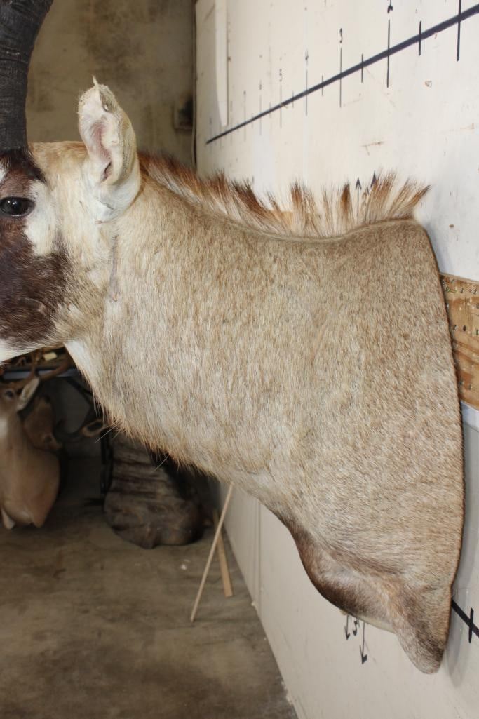Big ROAN Shoulder Mount in Good Condition. The Left Horn measures 26 5/8" Long and the Right Horn measures 26.75" Long. TAXIDERMY