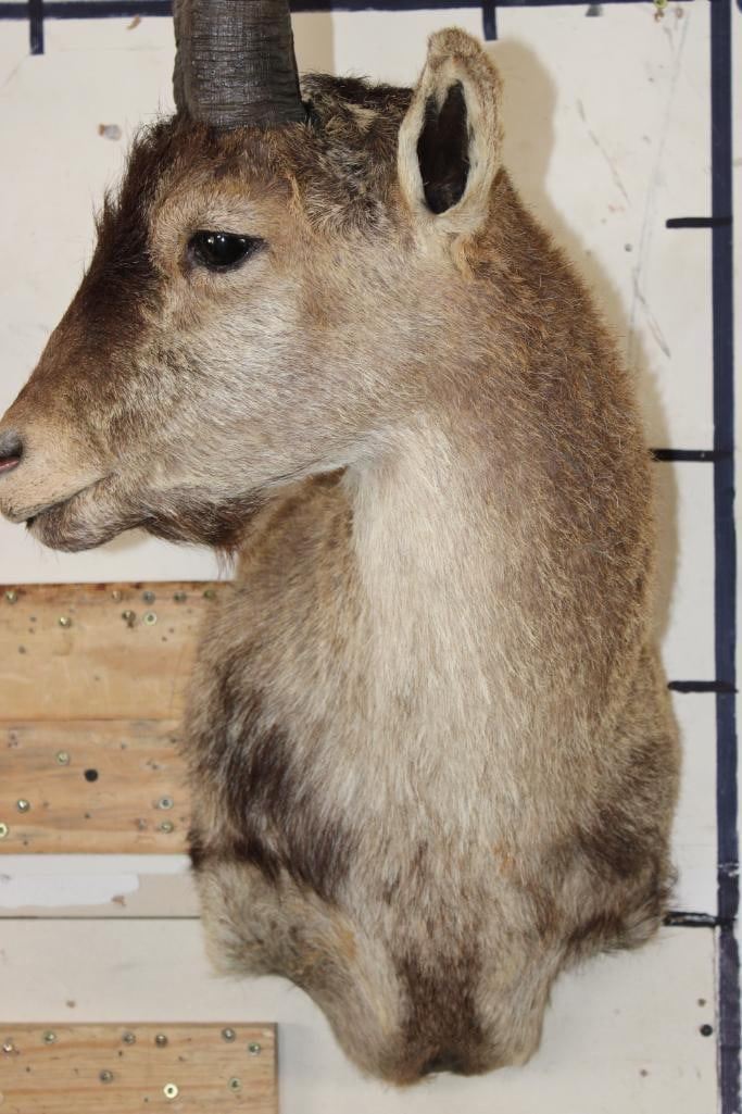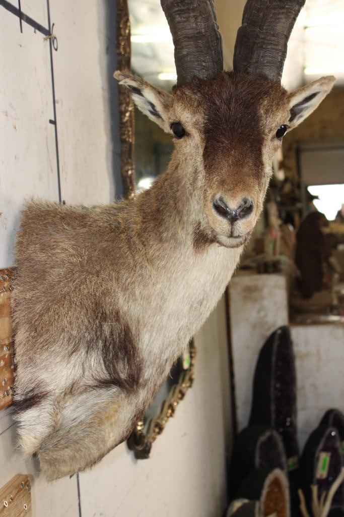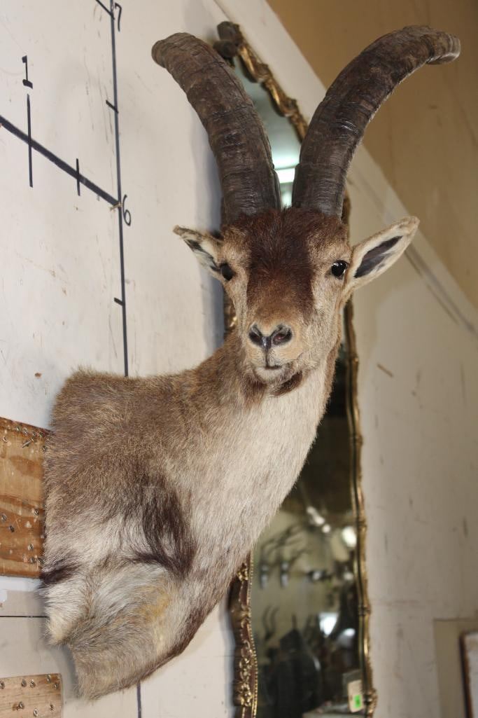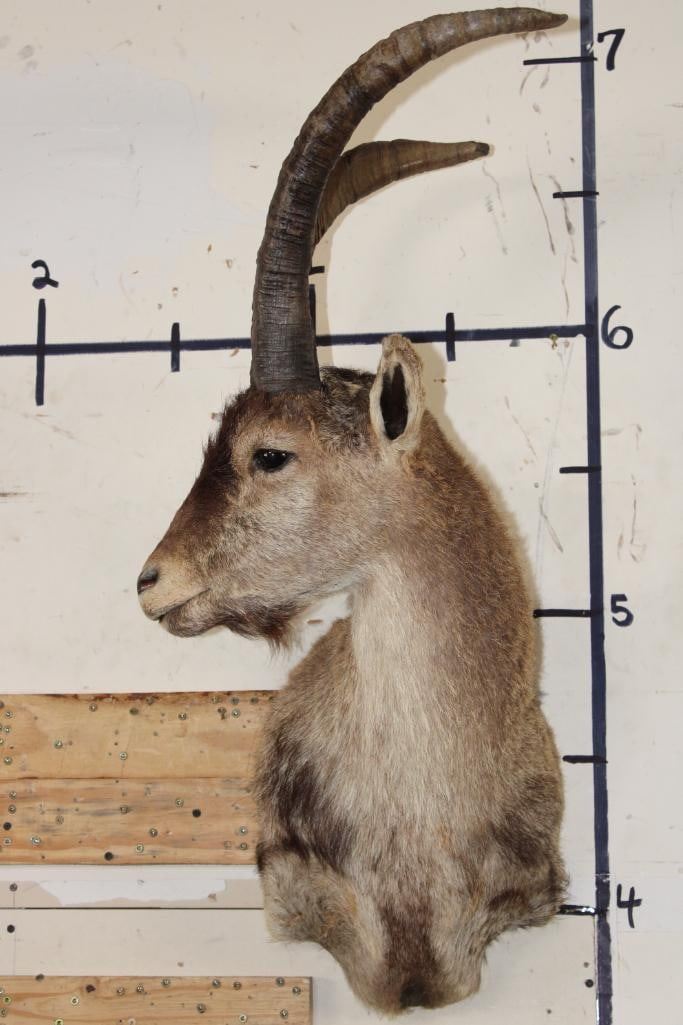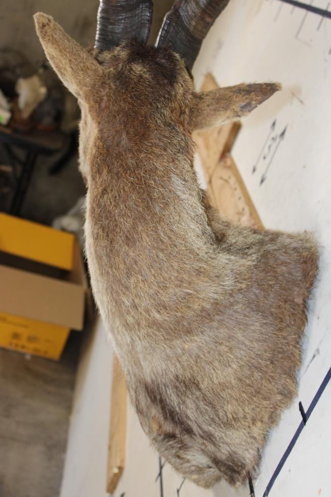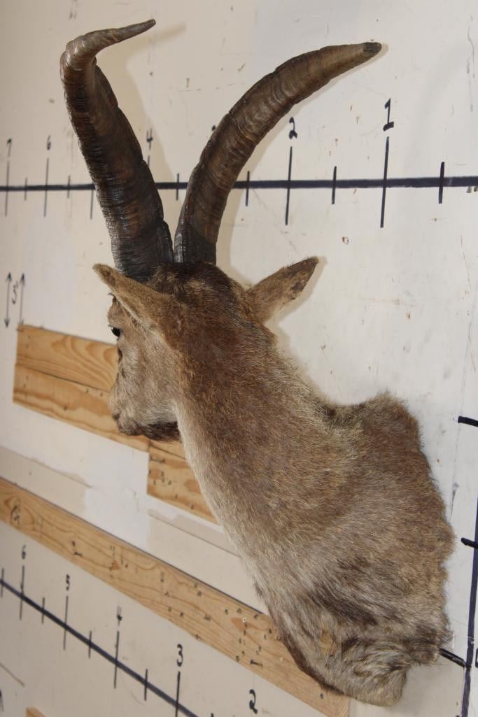 RONDA IBEX Shoulder Mount. The Left Horn measures 21.25" Long and the Right Horn measures 20" Long. It was Taken in Spain 2006. TAXIDERMY