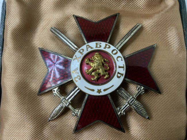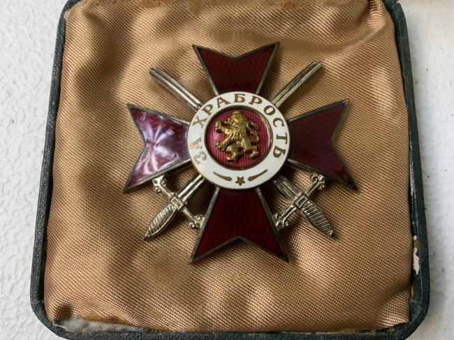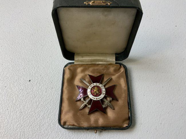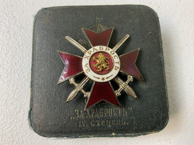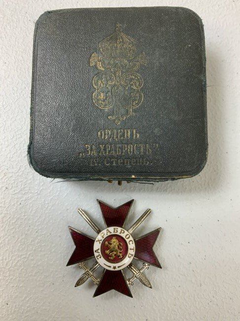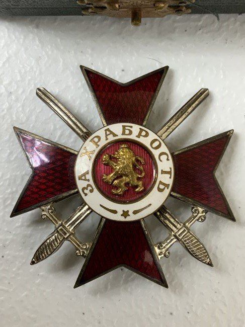 ROYAL BULGARIA MILITARY ORDER FOR BRAVERY 4th CLASS WITH ISSUE BOX. BEAUTIFUL ENAMELED CROSS . MAKER MARKED. ORIGINAL BOX . RARE