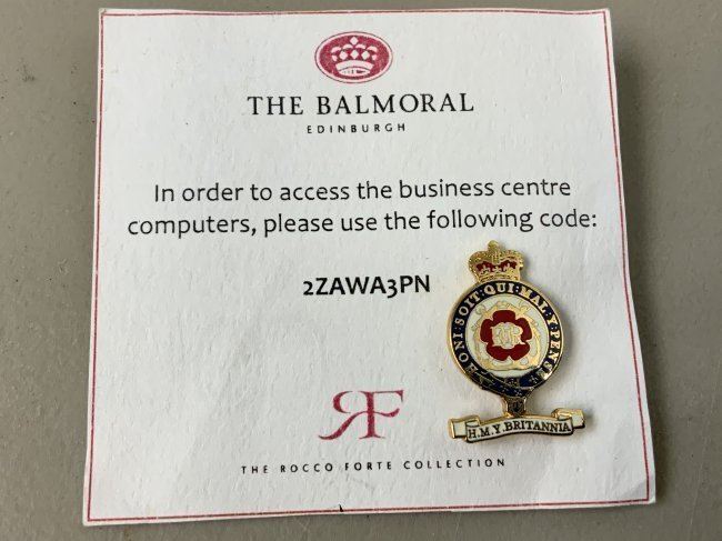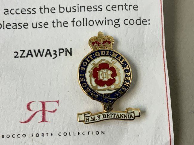 ROYAL MEMORABILIA QUEEN ELIZABETH YACHT "BRITANIA" PIN . FROM EDINBURGH SCOTLAND DINNED PARTICIPANT ABOARD THE ROYAL YACHT.