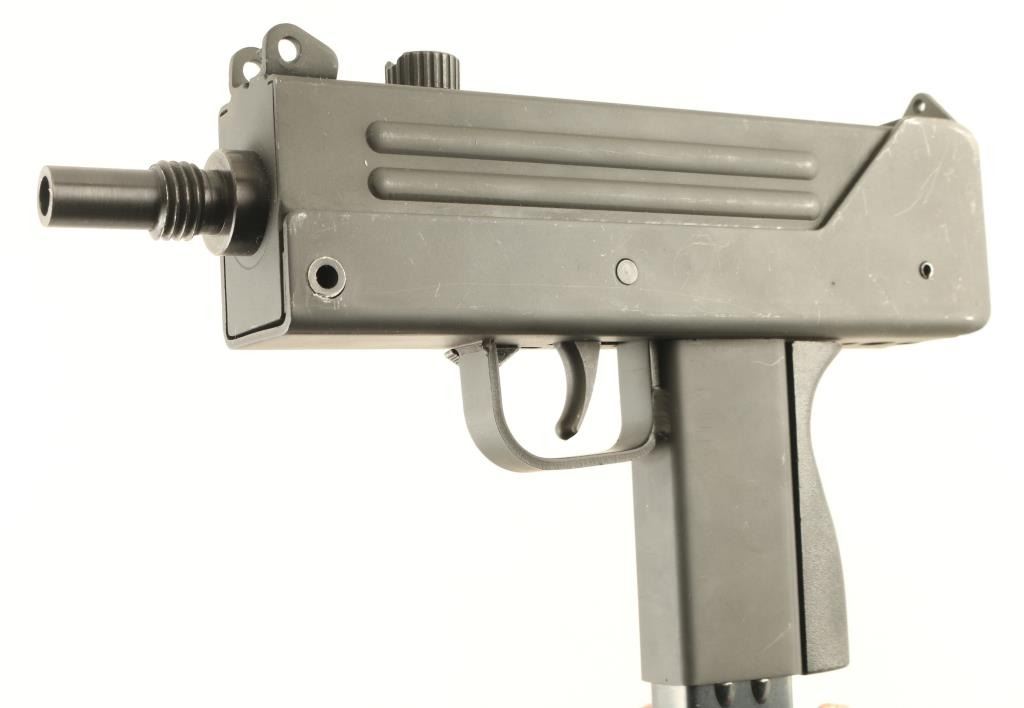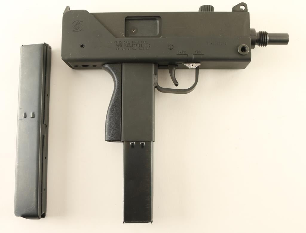 'SAP' Semiautomatic pistol features parkerized finish, black plastic backstrap, 5.5" barrel with threaded muzzle, fixed sights, heel magazine release, manual safety. Bore is excellent. Retains 90% finish with scuffs, some bare metal on high spots, safety button mostly bare metal. Includes (2) 30 round magazines. Condition is NRA Very Good ++ *** Modern Firearm ***