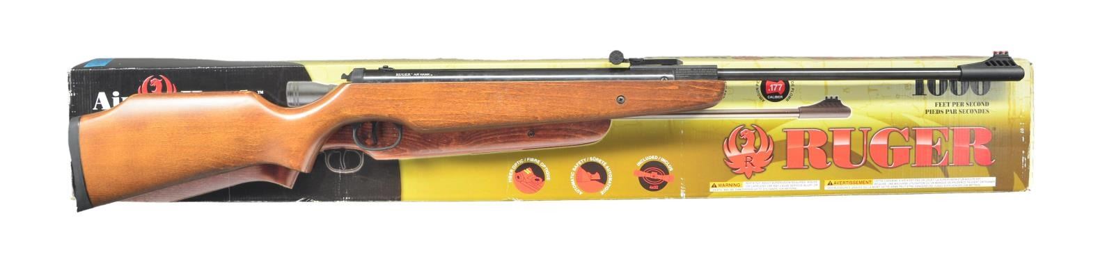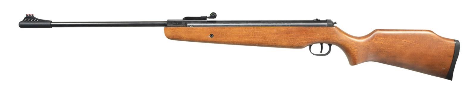 Cal. .177. S# 000154563. Mfg. in China. Bbl. 18.7" w/ muzzle break. Fiber optic adj. sights. Blue finish. Barrel break cocking spring pistol single shot action. Monte Carlo dark wood stock w/ recoil pad. UNATTACHED ACCESSORIES: box containing scope. Owner's manual plus misc. paperwork relating to firearms & accessories. CONDITION: very good metal finish w/ pinprick oxidation & marks. Very good wood finish w/ light marks & mildew spots. Very good bore. (02-19610/MD). $50-100.