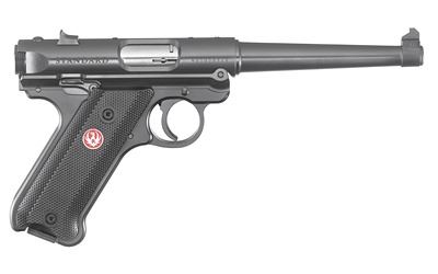 The Ruger Mark IV Rimfire Pistols have the classic look of the Mark III with a simple, one-button takedown for quick and easy field stripping. A recessed button in the back of the frame allows the upper receiver to tilt up and off of the grip frame without the use of tools. The bolt simply slides out of the receiver and the barrel can be properly cleaned from chamber to muzzle. The MKIV includes other significant improvements such as a one-piece grip frame that is precision CNC-machined from a solid piece of aluminum alloy; an ambidextrous manual safety and a redesigned bolt stop for more ergonomic operation. The magazine drops free on release for faster reloads and a redesigned magazine disconnect safety prevents discharge when the magazine has been removed. Internal improvements include changes to the hammer, sear, bolt and firing pin for smoother, more reliable feeding. Specific features vary by model, but the legendary, one-piece barreled receiver and internal cylindrical bolt construction remain the same. The robust design ensures permanent sight-to-barrel alignment and higher accuracy potential than conventional moving-slide designs. Includes two 10-round magazines.