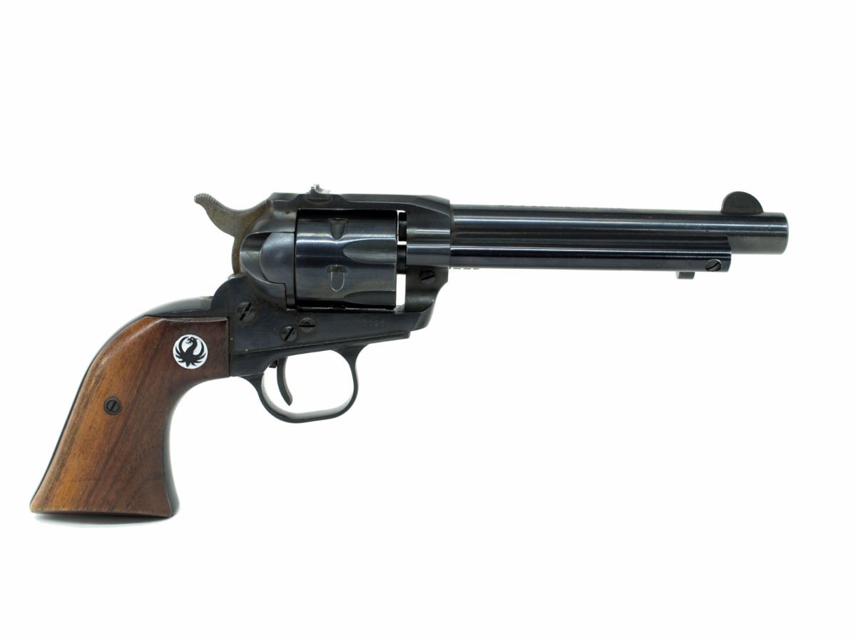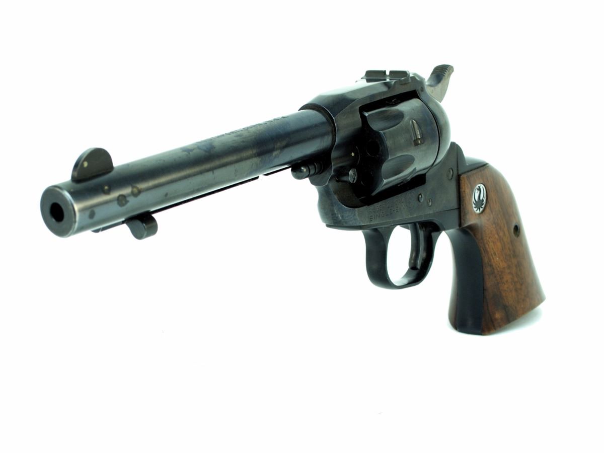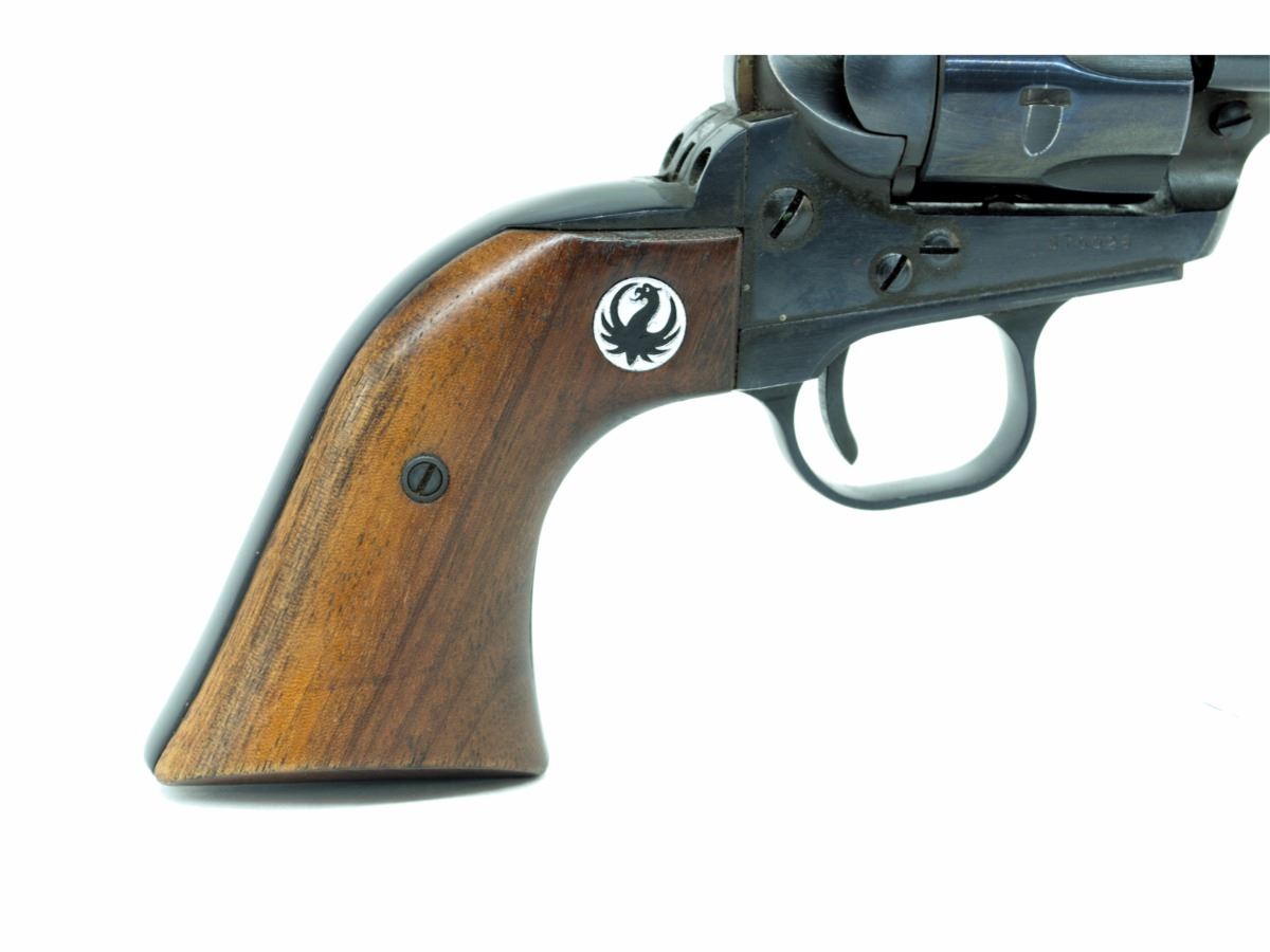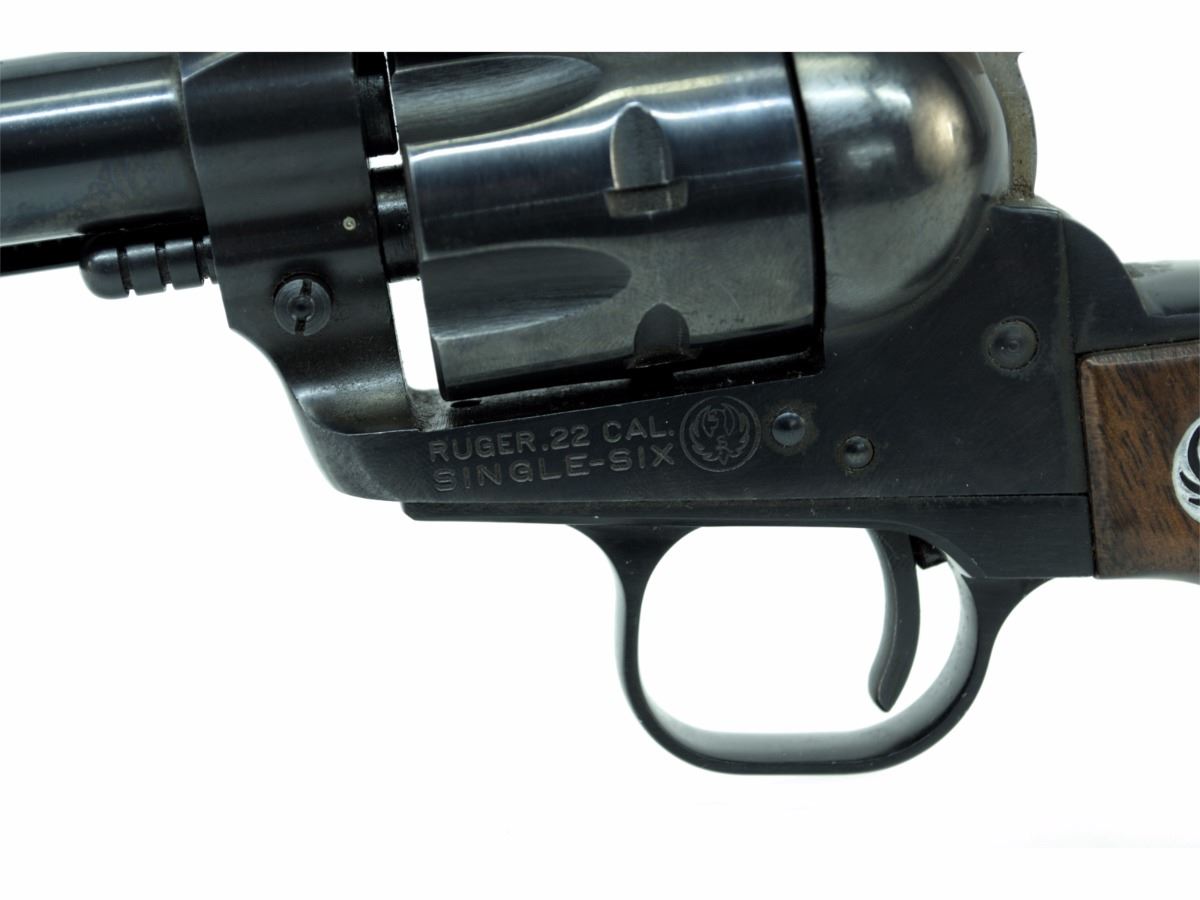 STOCK 2187-0524 G1, RUGER SINGLE SIX, CAL .22LR, BARREL LENGTH 140MM, WOOD GRIPS WITH A SMALL SCRATCH, BLUING HAS SOME PIT MARKS, BORE IS EXCELLENT, CONDITION 8/10, SN.370XXX