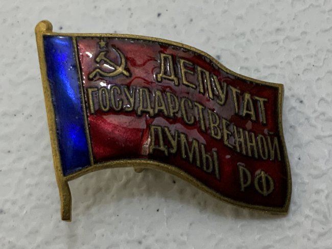RUSSIAN FEDERATION DUMA DEPUTY ENAMEL BADGE . GOOD CONDITION WITH A SMALL CHIP TO ENAMEL .SCREW BACK .