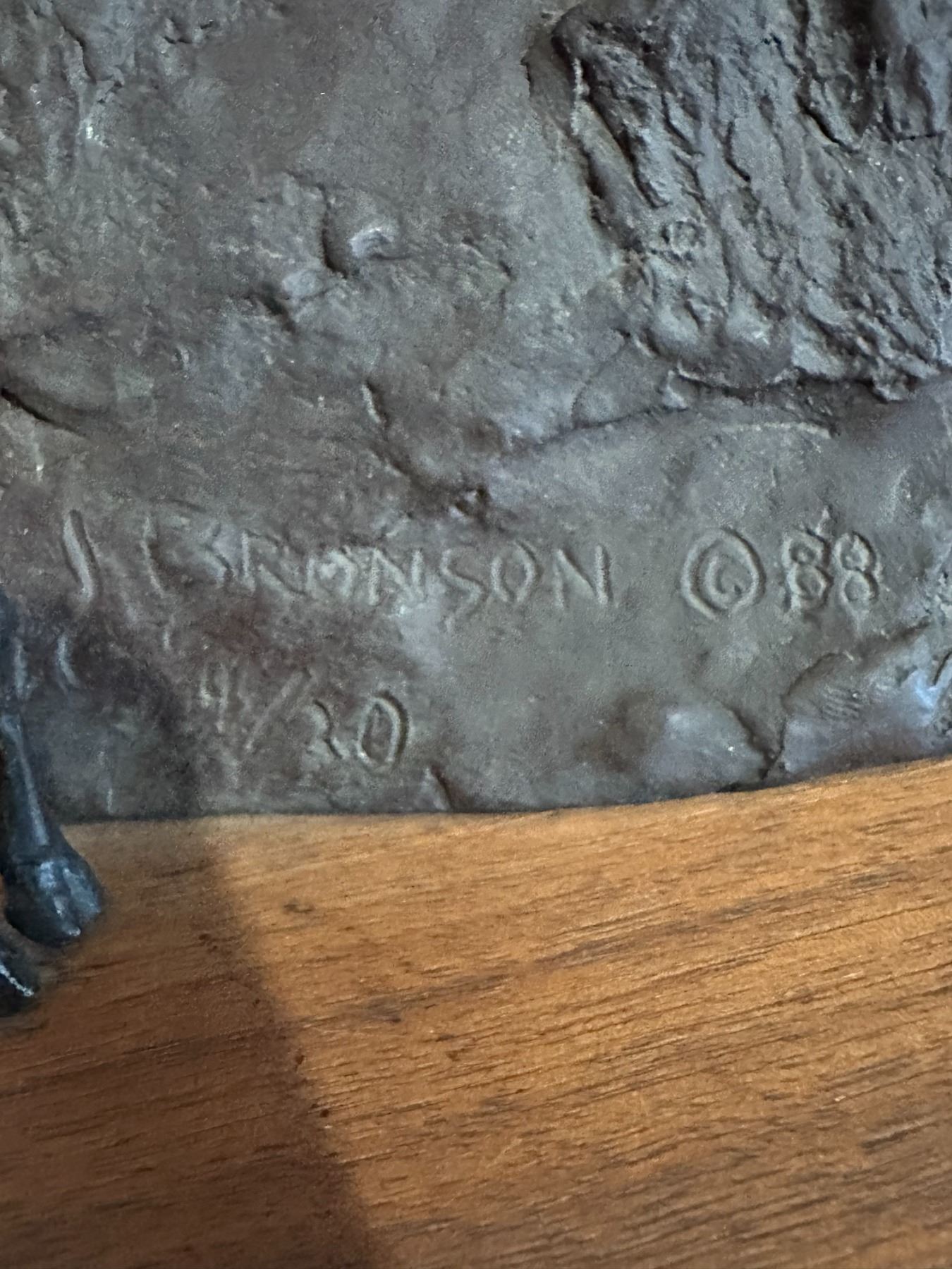 The bronze is a must for any trophy room or any location for that matter, It’s That impressive. A true work of art, by one of the leading art sculptors of our time. Truly a one of a kind sculpture, being number 4 in the series, it is understand by the family of Mr. Bronson; that only 8 total were ever cast. The owners of the other 7 may never be known.