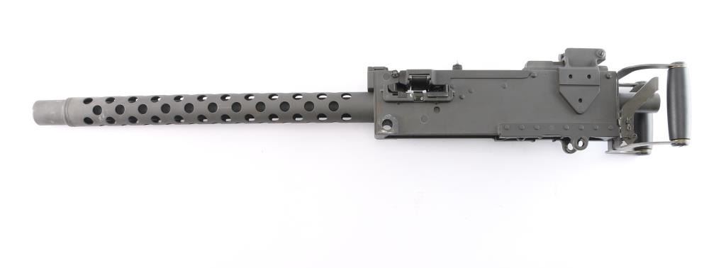 Semiautomatic rifle made using original parts for 1919A4 machineguns, modified and with added new parts to ensure semiautomatic only operation. Parkerized steel, with 24" barrel, ventilated barrel shroud, butterfly type thumb trigger, black polymer gripped dual spade handles, adjustable flip-up ladder rear sight and flip up blade front sight. Overall nearly new, with limited wear from rubbing parts and handling. Bore is shiny and bright. Includes many extras - two tripods (one ground, on Anti-Air tall tripod), WWII era USGI type 30 cal ammo can full of empty links, 1919A6 parts (stock, bipod, single grip with trigger), spare barrel, parts galore.