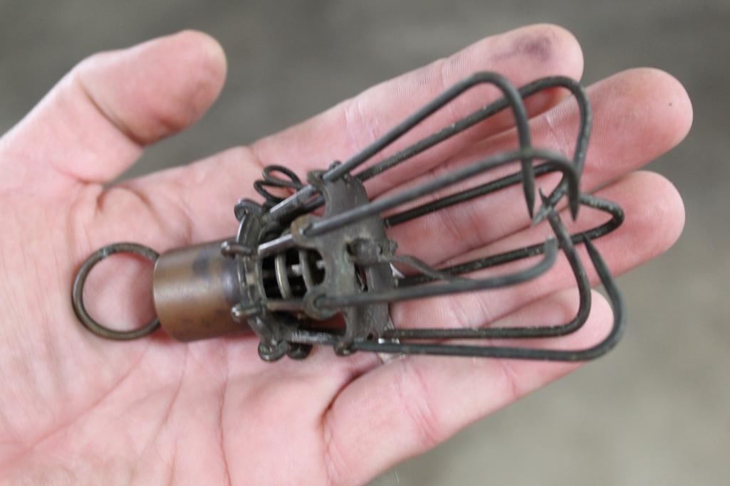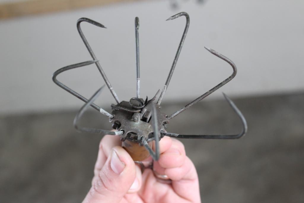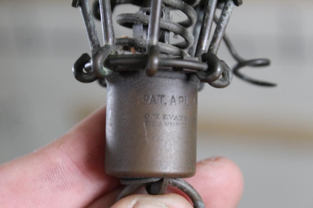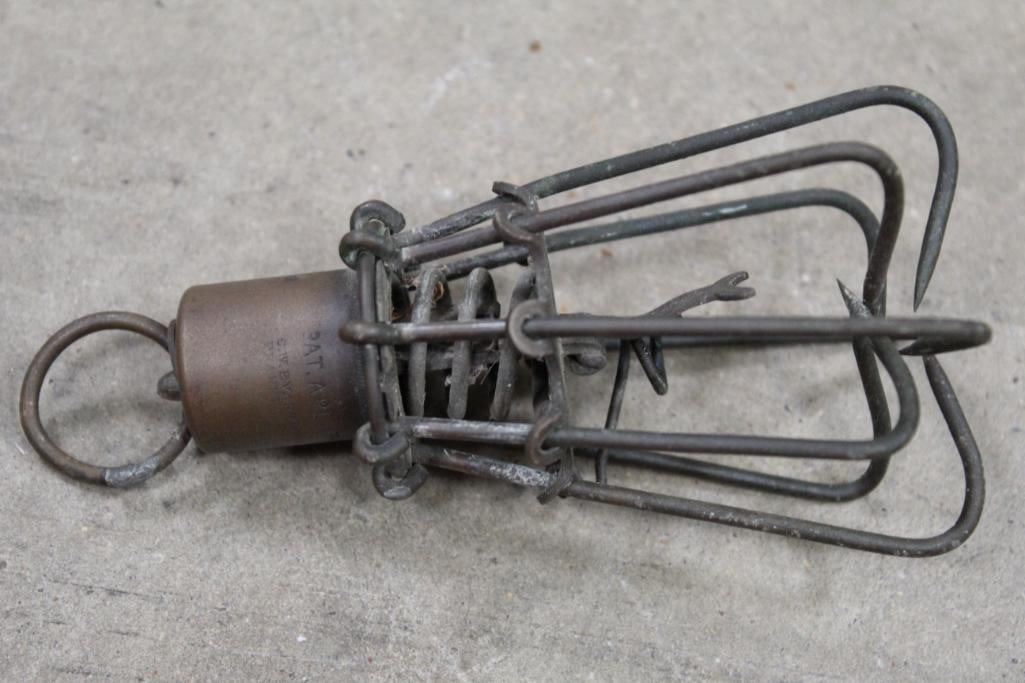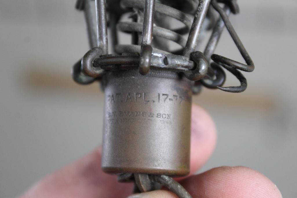 Antique and *Rare* S.W. Evans & Son CLAW FISH TRAP in Very Good working Condition. This is an "Eagle Claw" Spring loaded snare or fish trap patented in 1877. It has 8 hooks that spring closed once the trigger is tripped. It was made in Frankfort, PA. and measures 5" Long x 2.5" Wide. COLLECTIBLE HUNTING FISHING TRAPS