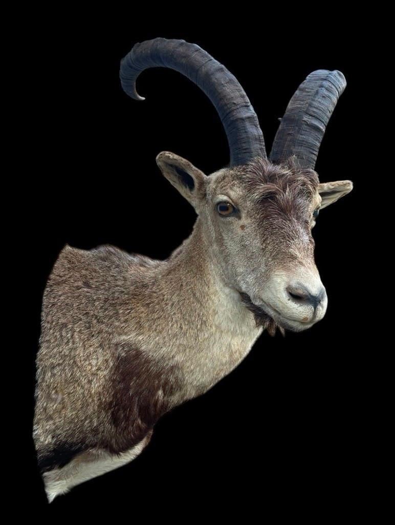 Very Nice *Rare* GREDOS IBEX Shoulder Mount. The Horns measures approximately 21" Long (along the curve) each and 8" around the Horn Base. It has a 12" Spread from Tip to Tip. The Total Mount measures 32" Tall x 17" Depth (from the wall). He will make a great display! It is in *Like New* Condition. TAXIDERMY