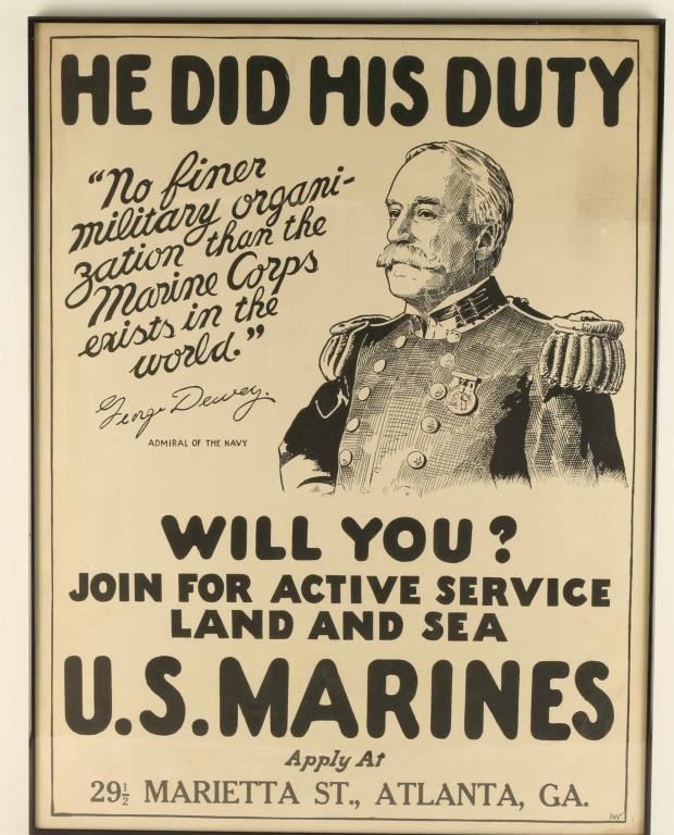 Measures 27 1/2" x 21 1/4". Featuring Admiral George Dewey. Shows some fold marks in the upper right quadrant. Exceptionally hard to find.