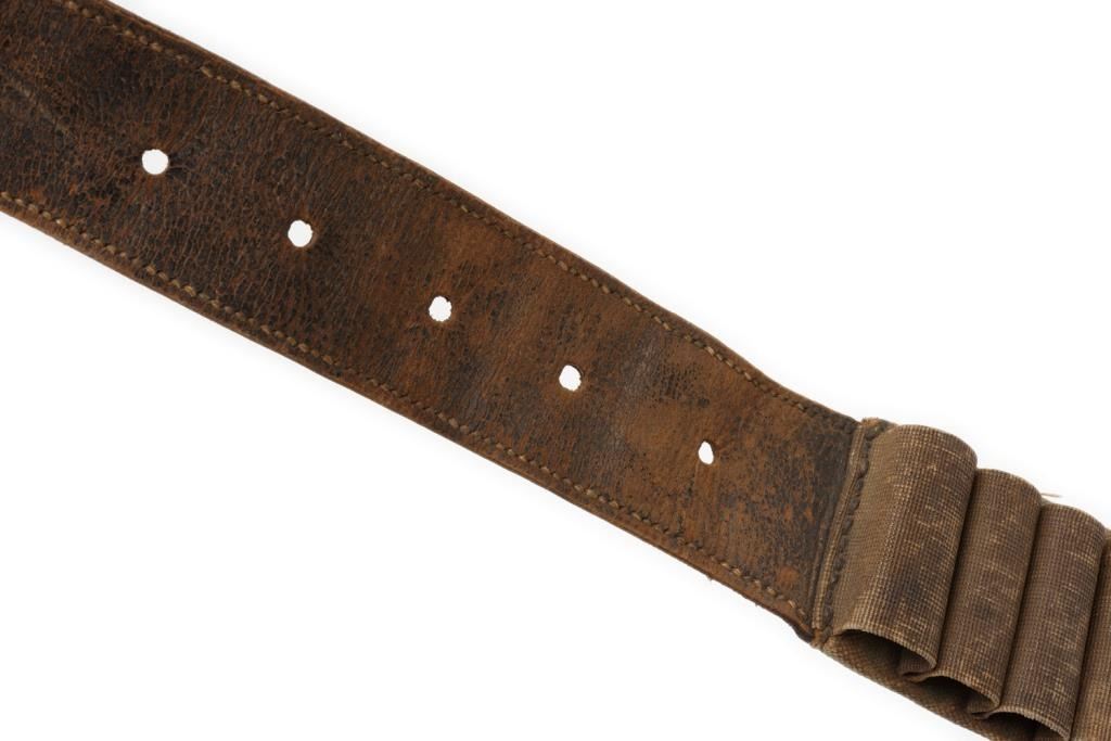Rare U.S. military “prairie” cartridge belt for .50-70 caliber carbine cartridges in overall very good to near fine condition with leather belt tongue and square brass buckle. Est.: $3,000-$6,000.