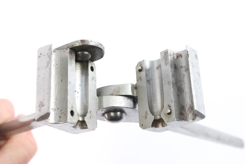 "Old Reliable" and Sharps Rifle Co. marked mold in 45-500 cal., illustrated seller's book. Original bright finish. Very good plus with one leg bent and minor use. Excellent cavity. "Bob" Butterfield Collection.