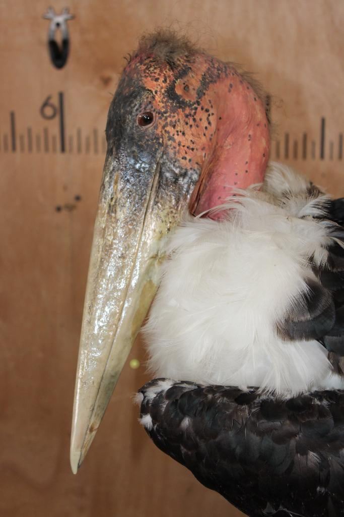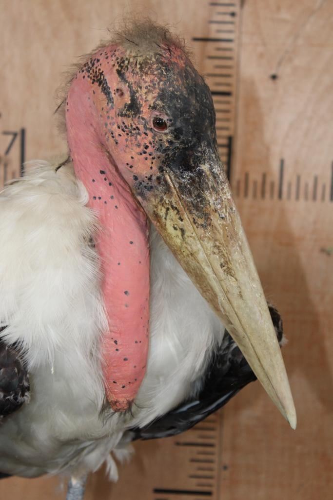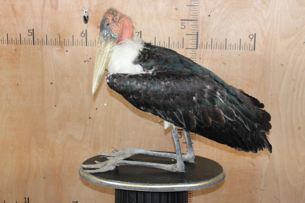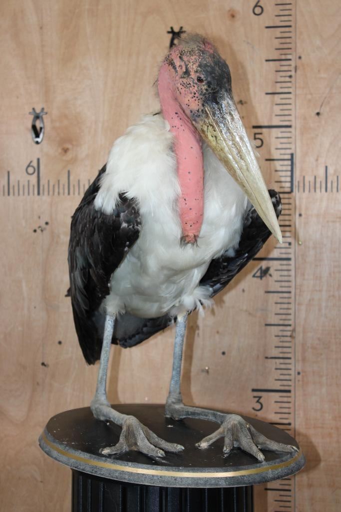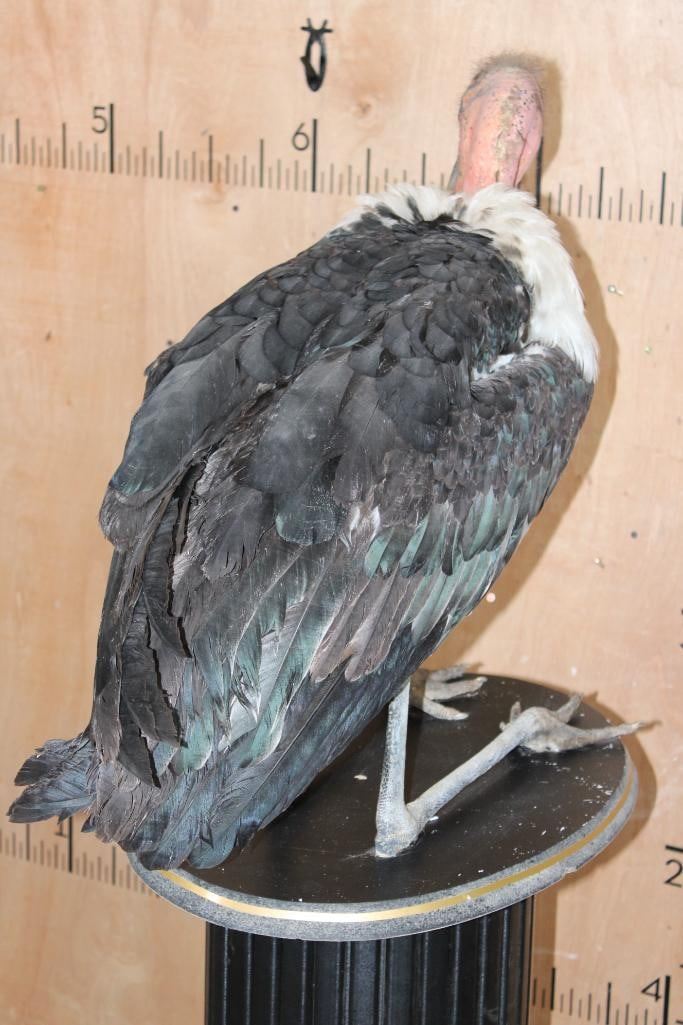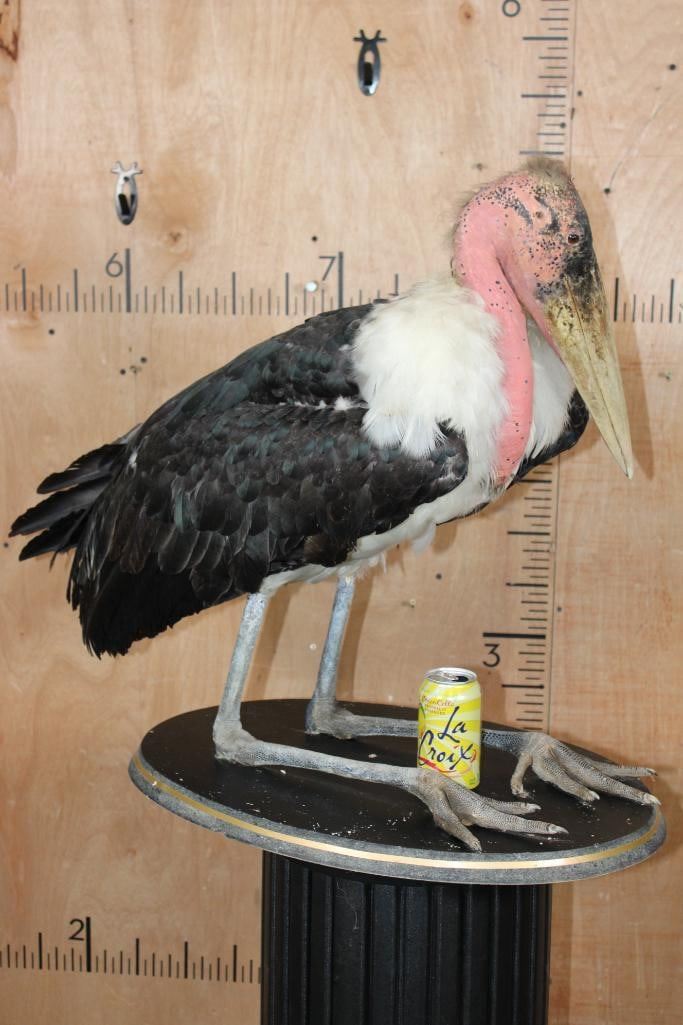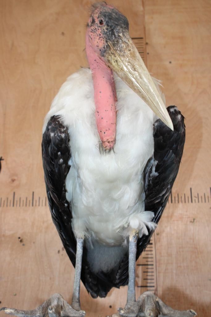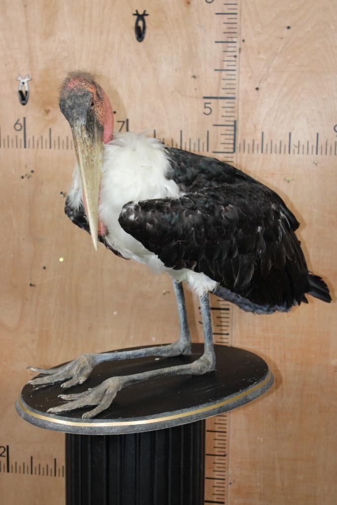 *Rarely Seen* MARABOU STORK or "Undertaker bird" on a Wood Plaque Base. It measures 25" Long x 17" Wide x 27" Tall. This is an older mount in Good Condition. The Marabou stork is a large wading bird in the stork family Ciconiidae native to sub-Saharan Africa. TAXIDERMY BIRDS