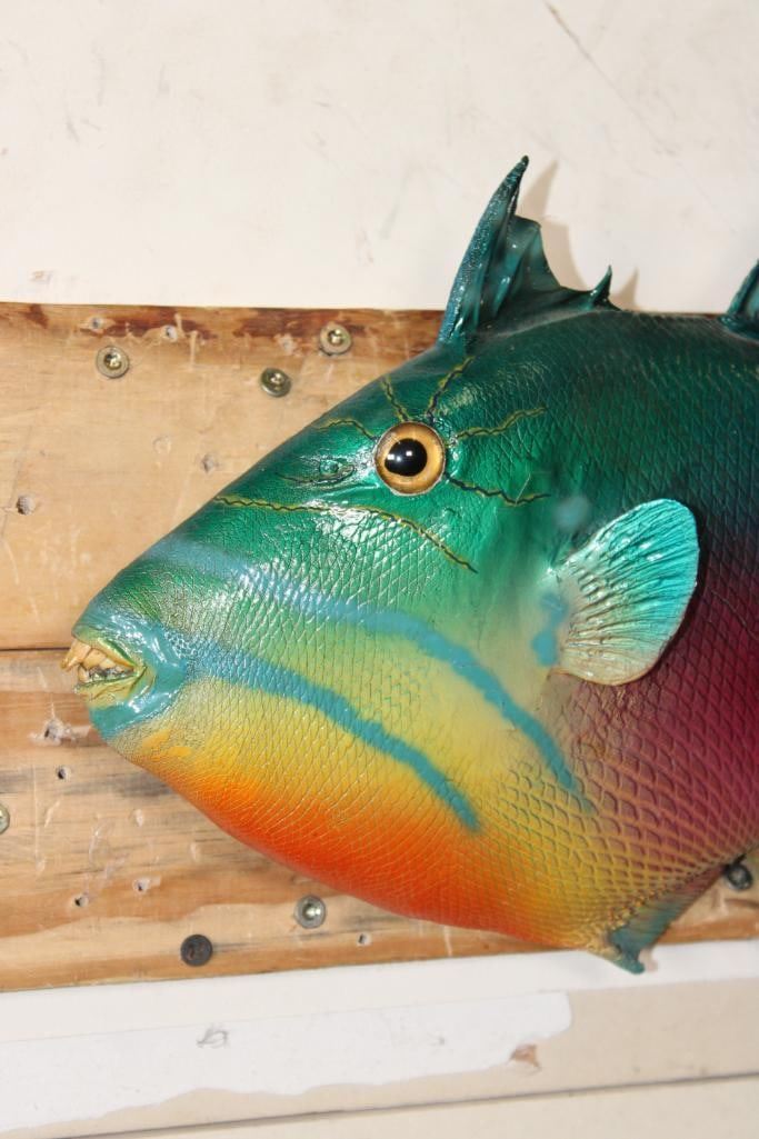 Beautiful *Rarely Seen* *Real Skin* QUEEN TRIGGERFISH Mount. It measures 22.25" Long x 10.5" Wide and is in Very Good Condition. TAXIDERMY
