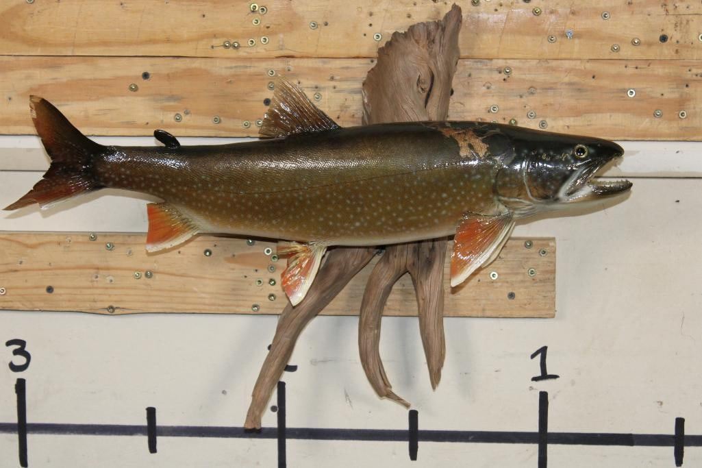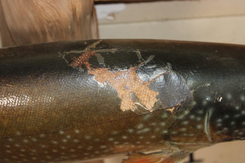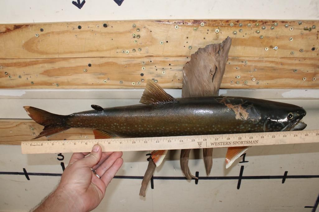 *Real Skin* BROOK TROUT on a Driftwood Wall Hanger. The Brook Trout measures 25.5" Long. It has some fin and skin damage. TAXIDERMY FISH