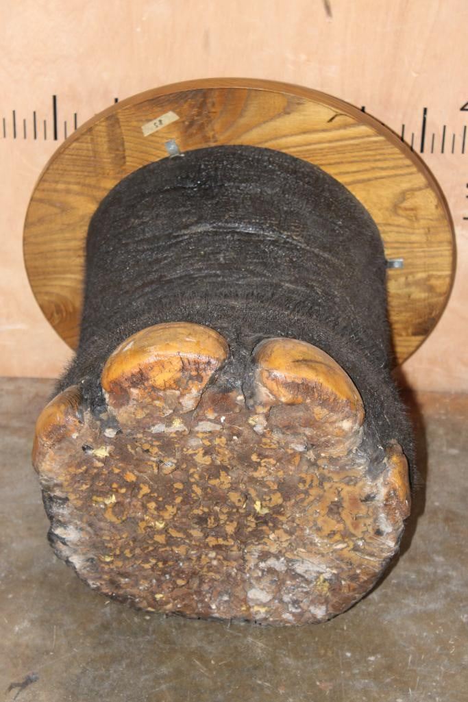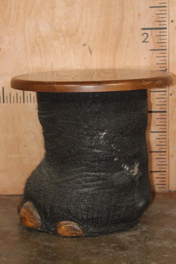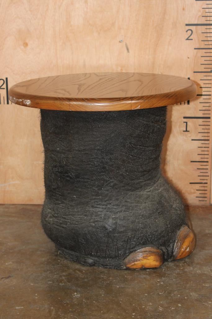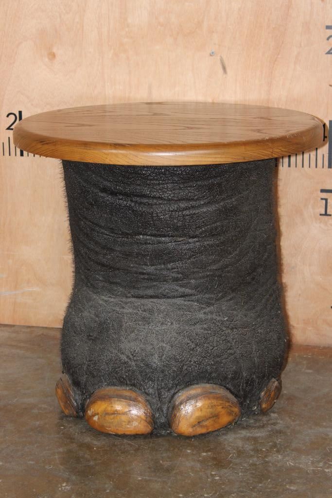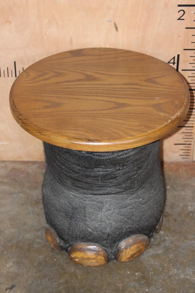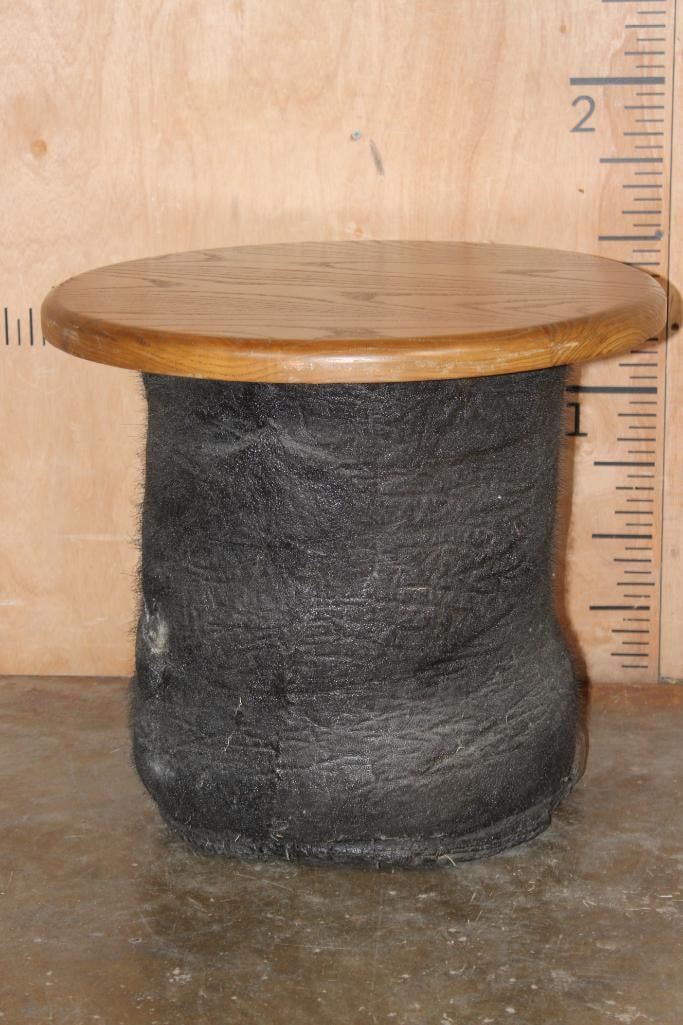 *Real Skin* Big ELEPHANT Front FOOT Table with a Wood Top. It measures 21.5" Long x 20.5" Wide x 19" Tall and is in Good Condition. TAXIDERMY FURNITURE