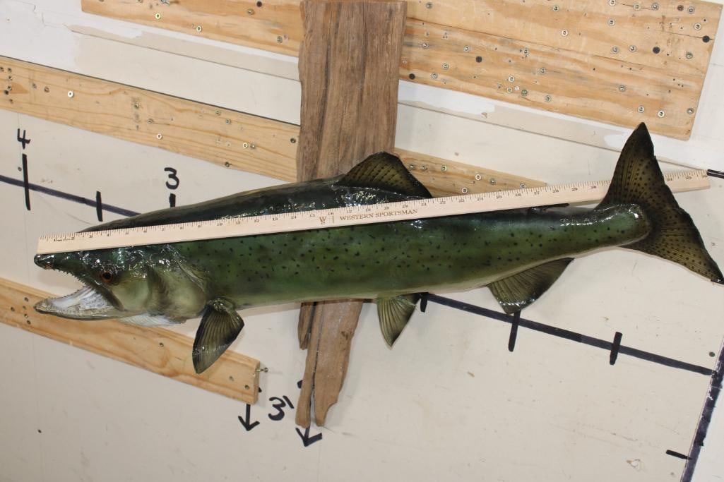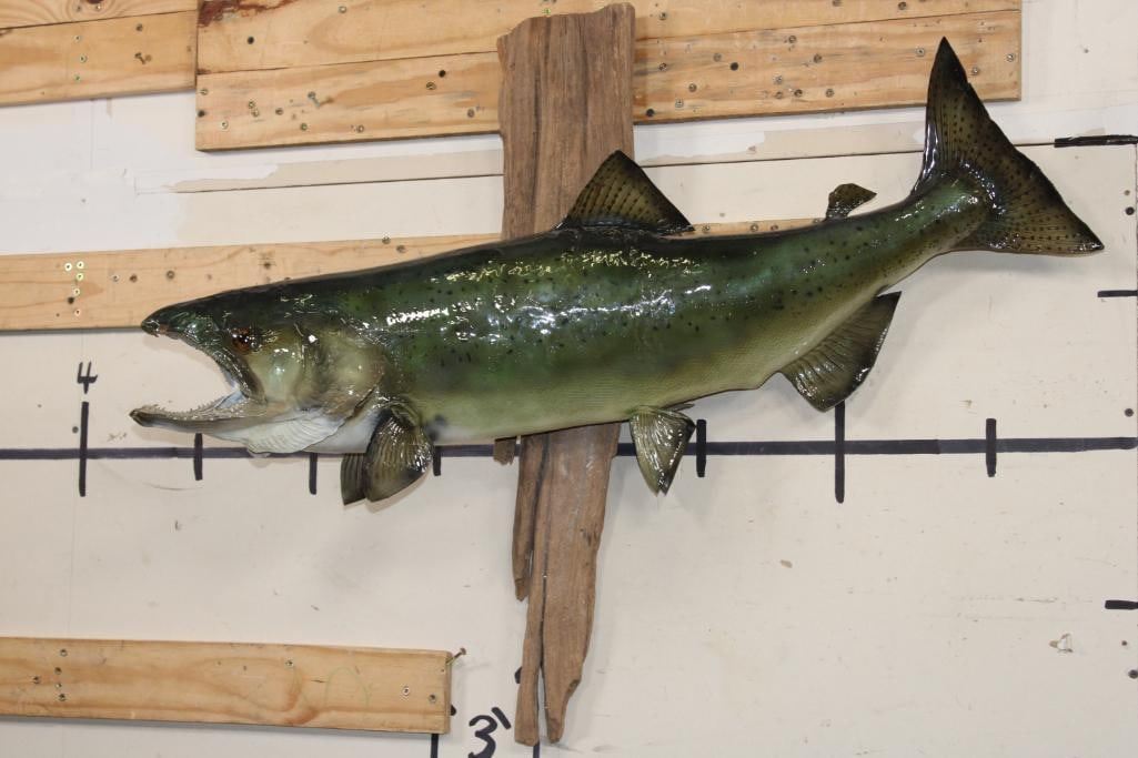 Nice Real Skin KING SALMON Fish Mounted on Driftwood. It measures 37.5" Long and is in Good Condition. TAXIDERMY FISH
