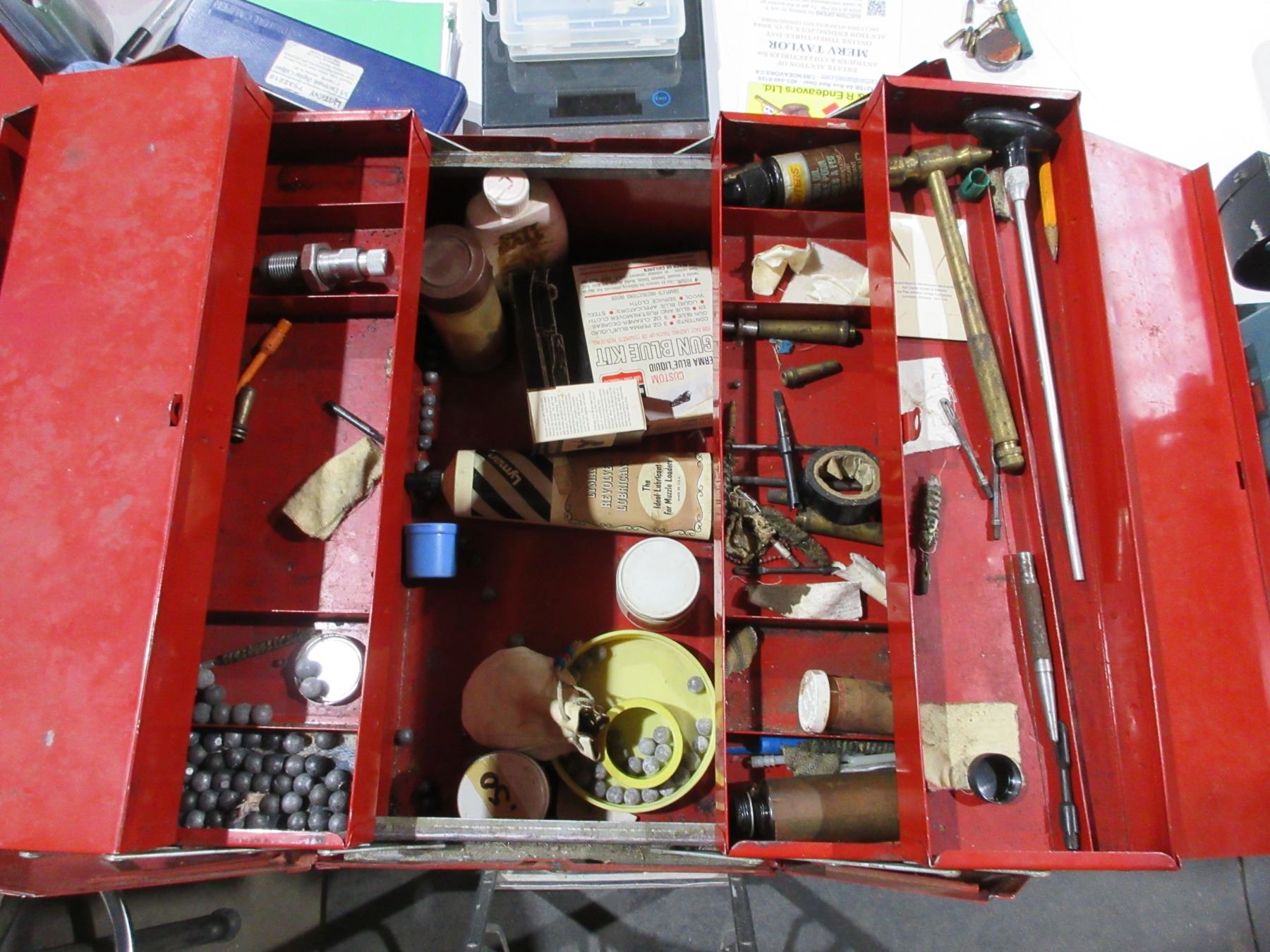 Red Toolbox with Gun/Muzzleloading Tools and Supplies - Sears Craftsman Toolbox is 18" x 10" x 13" High