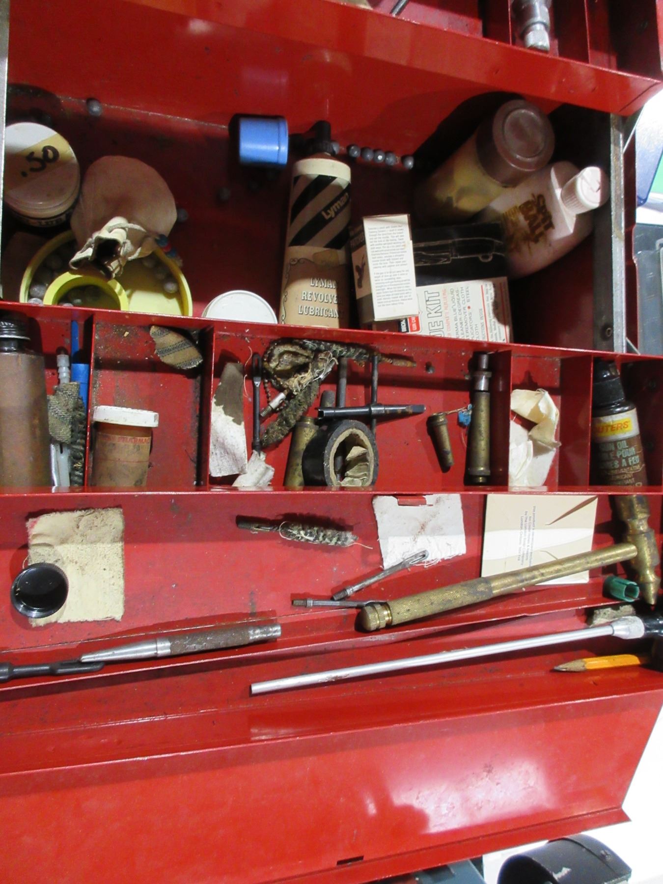 Red Toolbox with Gun/Muzzleloading Tools and Supplies