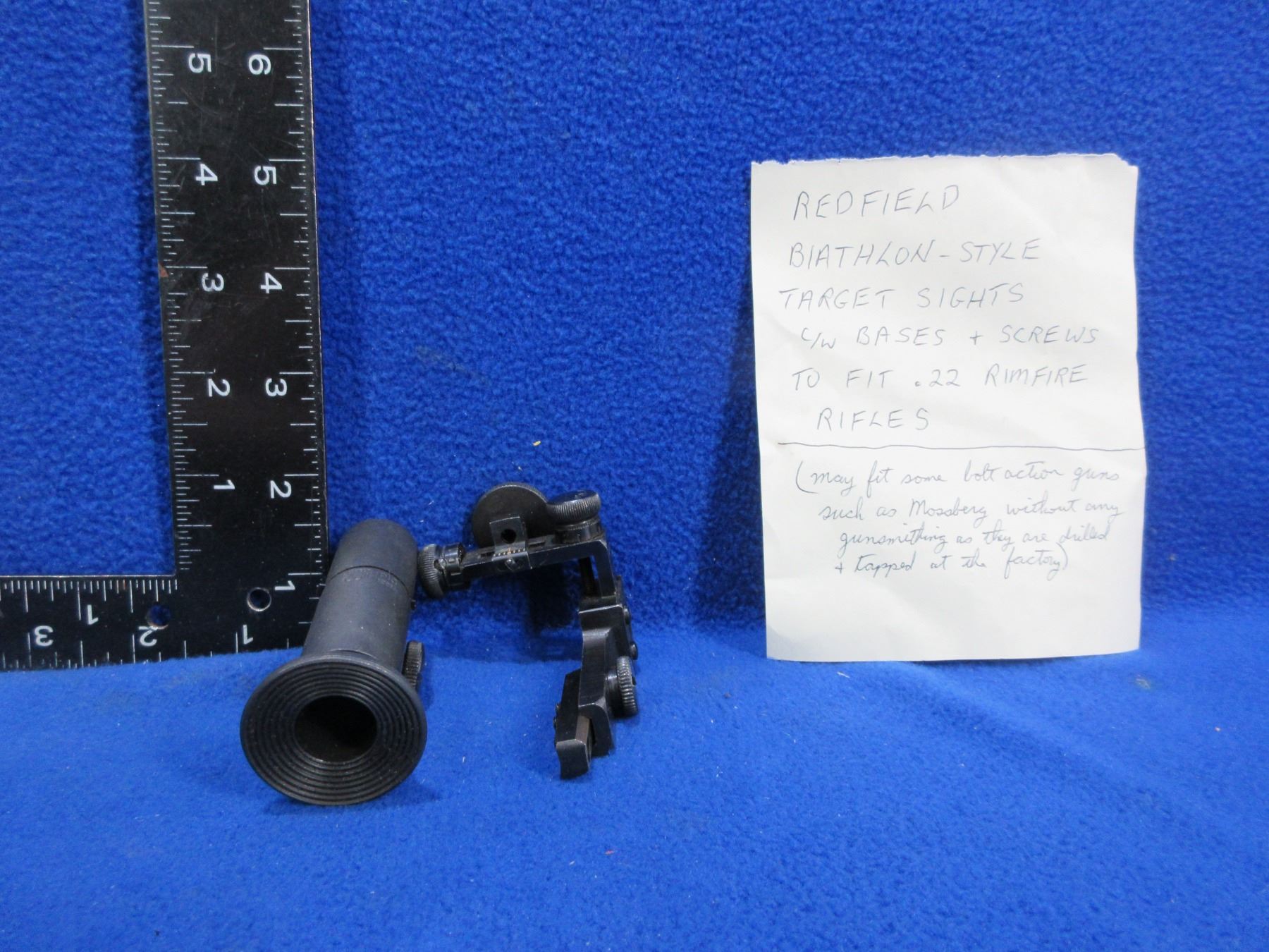 Redfield Biathlon Style Target Peep Sights with .22 RF Bases & Screws - May fit some bolt action guns such as Mossberg without any gunsmithing as they are drilled and tapped at the factory